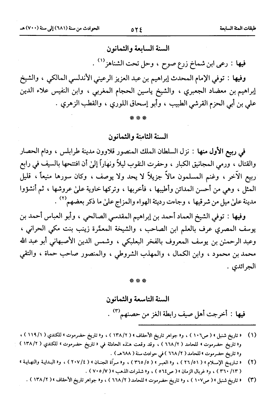 (1) «تاريخ شنبل» (ص 106)، و «جواهر تاريخ الأحقاف» (2/ 138)، و «تاريخ حضرموت» للكندي (1/ 119)، و «تاريخ حضرموت» للحامد (2/ 668)، وقد وقعت هذه الحادثة في «تاريخ حضرموت» للكندي (2/ 138) و «تاريخ حضرموت» للحامد (2/ 668) في حوادث سنة (688 هـ).