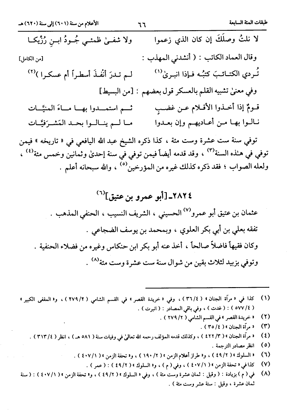 عثمان بن عتيق أبو عمرو (7) الحسيني، الشريف النسيب، الحنفي المذهب.