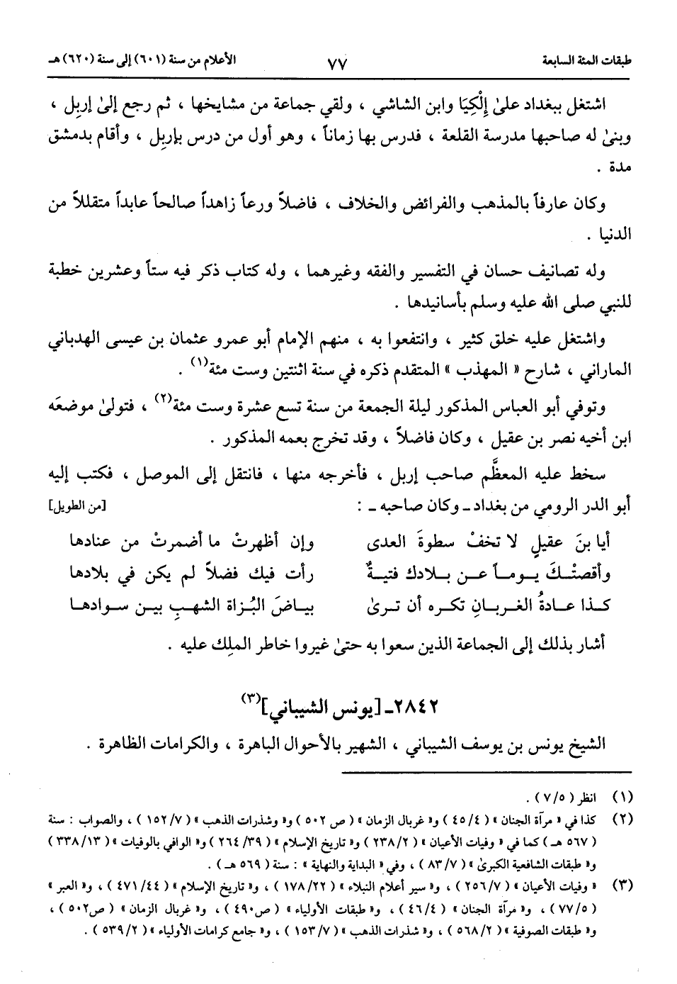 (3) «وفيات الأعيان» (7/ 256)، و «سير أعلام النبلاء» (22/ 178)، و «تاريخ الإسلام» (44/ 471)، و «العبر» (5/ 77)، و «مرآة الجنان» (4/ 46)، و «طبقات الأولياء» (ص 490)، و «غربال الزمان» (ص 502)، و «طبقات الصوفية» (2/ 568)، و «شذرات الذهب» (7/ 153)، و «جامع كرامات الأولياء» (2/ 539).
