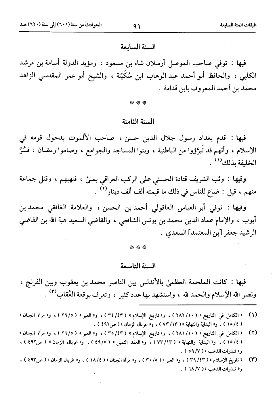 (1) «الكامل في التاريخ» (10/ 282)، و «تاريخ الإسلام» (43/ 34)، و «العبر» (5/ 26)، و «مرآة الجنان» (4/ 15)، و «البداية والنهاية» (13/ 73)، و «غربال الزمان» (ص 492).