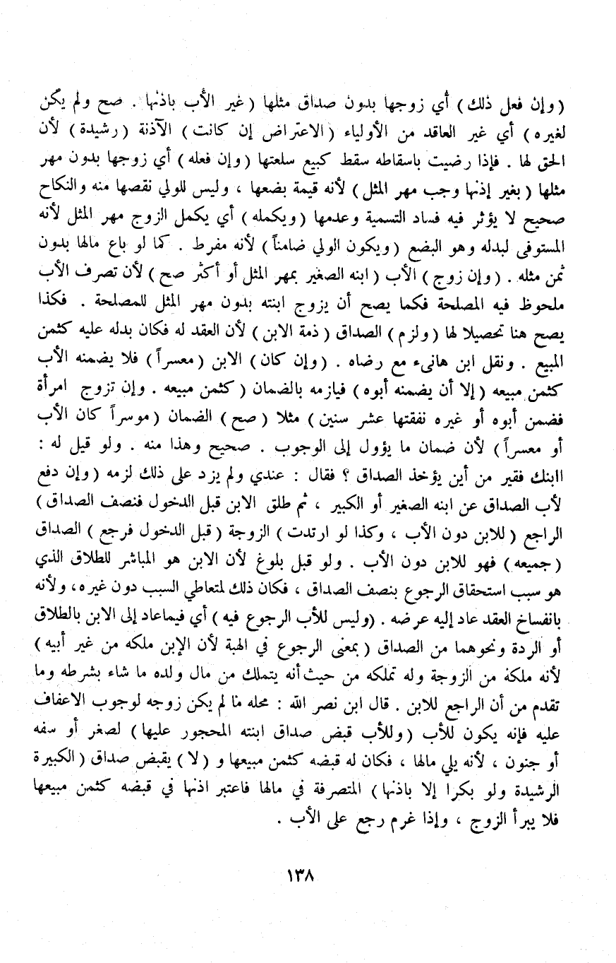 (وَلِلْأَبِ قَبْضُ صَدَاقِ ابْنَتِهِ الْمَحْجُورِ عَلَيْهَا) لِصِغَرٍ أَوْ سَفَهٍ أَوْ جُنُونٍ لِأَنَّهُ يَلِي مَالَهَا، فَكَانَ لَهُ قَبْضُهُ كَثَمَنِ مَبِيعِهَا وَ (لَا) يُقْبَضُ صَدَاقُ (الْكَبِيرَةِ الرَّشِيدَةِ وَلَوْ بِكْرًا إلَّا بِإِذْنِهَا) الْمُتَصَرِّفَةِ فِي مَالِهَا فَاعْتُبِرَ إذْنُهَا فِي قَبْضِهِ كَثَمَنِ مَبِيعِهَا فَلَا يَبْرَأُ الزَّوْجُ، وَإِذَا غَرِمَ رَجَعَ عَلَى الْأَبِ.