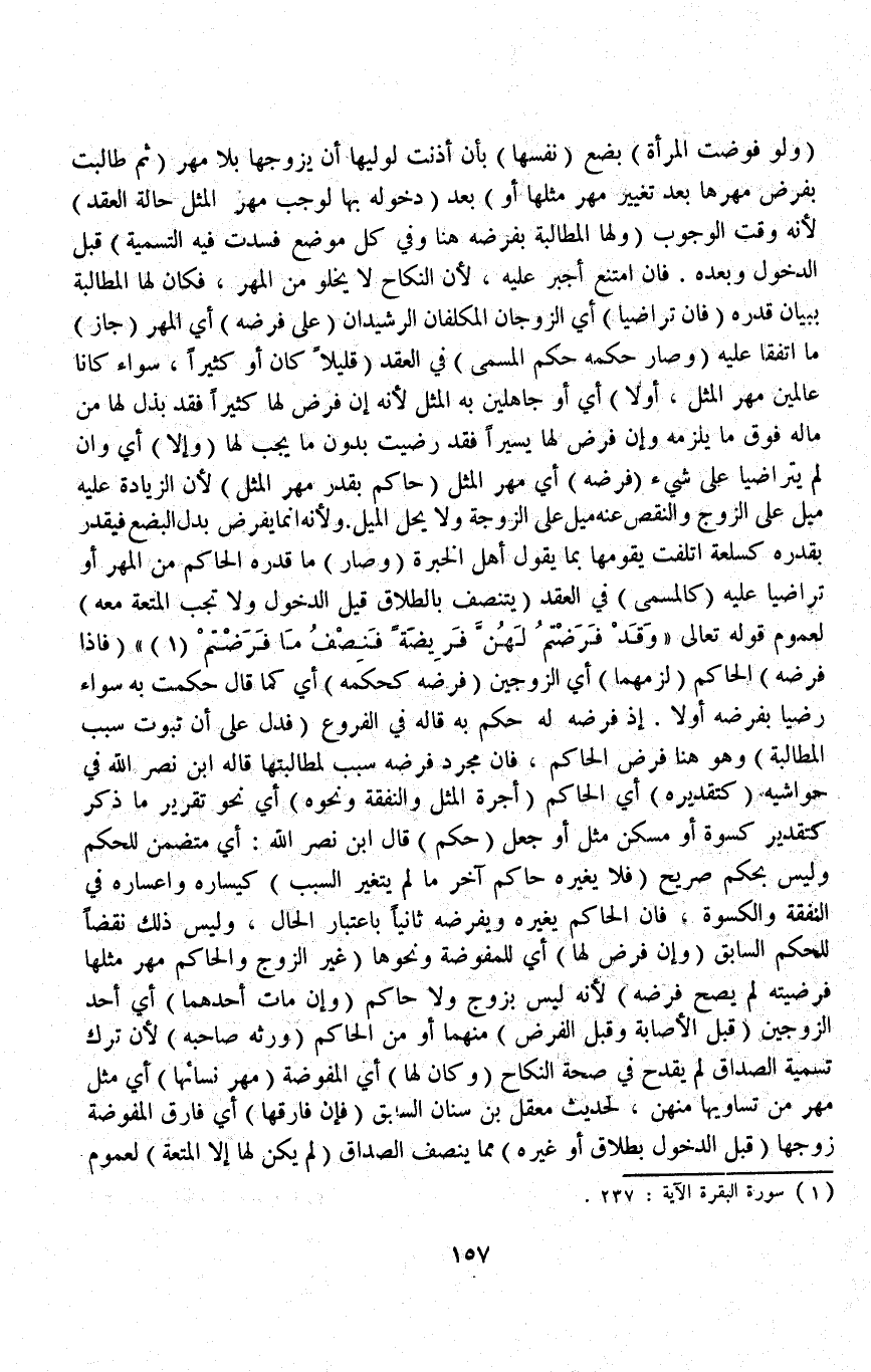 (وَإِلَّا) أَيْ وَإِنْ لَمْ يَتَرَاضَيَا عَلَى شَيْءٍ (فَرَضَهُ) أَيْ مَهْرَ الْمِثْلِ (حَاكِمٌ بِقَدْرِ مَهْرِ الْمِثْلِ) لِأَنَّ الزِّيَادَةَ عَلَيْهِ مَيْلٌ عَلَى الزَّوْجِ وَالنَّقْصَ عَنْهُ عَلَى الزَّوْجَةِ وَلَا يَحِلُّ الْمَيْلُ وَلِأَنَّهُ إنَّمَا يُفْرَضُ بَدَلَ الْبُضْعِ فَيُقَدَّرُ بِقَدْرِهِ كَسِلْعَةٍ أُتْلِفَتْ يُقَوِّمُهَا بِمَا يَقُولُ أَهْلُ الْخِبْرَةِ (وَصَارَ) مَا قَدَّرَهُ الْحَاكِمُ مِنْ الْمَهْرِ أَوْ تَرَاضَيَا عَلَيْهِ (كَالْمُسَمَّى) فِي الْعَقْدِ (يَتَنَصَّفُ بِالطَّلَاقِ قَبْلَ الدُّخُولِ وَلَا تَجِبُ الْمُتْعَةُ مَعَهُ) لِعُمُومِ قَوْله تَعَالَى {وَقَدْ فَرَضْتُمْ لَهُنَّ فَرِيضَةً فَنِصْفُ مَا فَرَضْتُمْ} [البقرة: ٢٣٧] (فَإِذَا فَرَضَهُ) الْحَاكِمُ (لَزِمَهُمَا) أَيْ الزَّوْجَيْنِ (فَرْضُهُ كَحُكْمِهِ) أَيْ كَمَا قَالَ حَكَمْتُ بِهِ سَوَاءٌ رَضِيَا بِفَرْضِهِ أَوْ لَا إذْ فَرْضُهُ لَهُ حُكِمَ بِهِ قَالَهُ فِي الْفُرُوعِ.