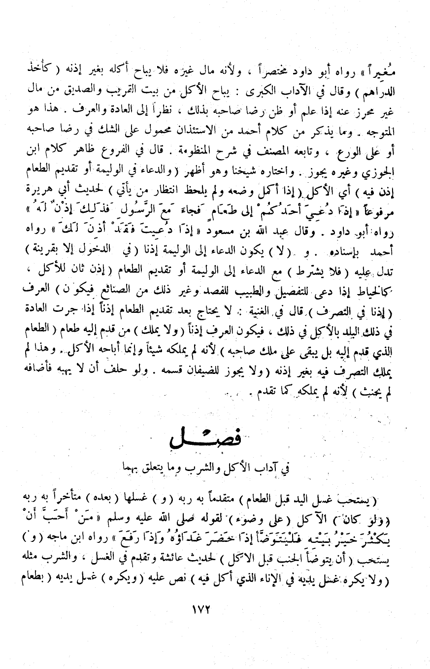 [فَصْل آدَابِ الْأَكْلِ وَالشُّرْبِ وَمَا يَتَعَلَّقُ بِهِمَا]
