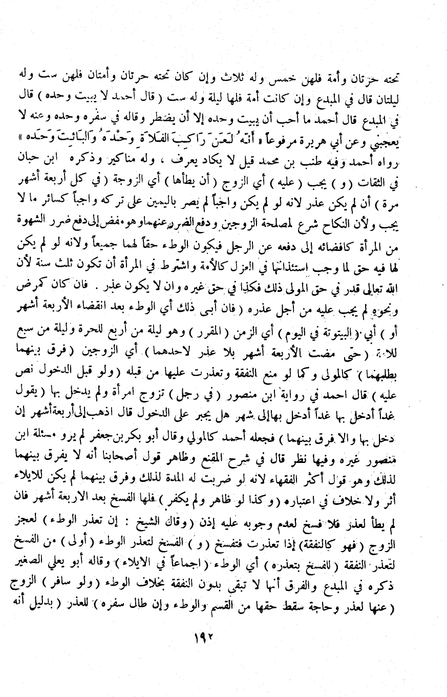(وَ) يَجِبُ (عَلَيْهِ) أَيْ الزَّوْجِ (أَنْ يَطَأَهَا) أَيْ الزَّوْجَةَ (فِي كُلِّ أَرْبَعَةِ أَشْهُرٍ مُرَّةً) إنْ لَمْ يَكُنْ عُذْرٌ لِأَنَّهُ لَوْ لَمْ يَكُنْ وَاجِبًا لَمْ يَصِرْ بِالْيَمِينِ عَلَى تَرْكِهِ وَاجِبًا كَسَائِرِ مَا لَا يَجِبُ وَلِأَنَّ النِّكَاحَ شُرِعَ لِمَصْلَحَةِ الزَّوْجَيْنِ، وَدَفْعٍ الضَّرَرِ عَنْهُمَا، وَهُوَ مُفْضٍ إلَى دَفْعِ ضَرَرِ الشَّهْوَة مِنْ الْمَرْأَةِ كَإِفْضَائِهِ إلَى دَفْعِهِ عَنْ الرَّجُلِ، فَيَكُونُ الْوَطْءُ حَقًّا لَهُمْ جَمِيعًا وَلِأَنَّهُ لَوْ لَمْ يَكُنْ لَهَا فِيهِ حَقّ لَمَا وَجَبَ اسْتِئْذَانُهَا فِي الْعَزْلِ كَالْأَمَةِ، وَاشْتُرِطَ فِي الْمَرْأَةِ أَنْ تَكُونَ ثُلُثَ سَنَةٍ لِأَنَّ اللَّهَ تَعَالَى قَدَّرَ فِي حَقِّ الْمَوْلَى ذَلِكَ فَكَذَا فِي حَقّ غَيْرِهِ، وَأَنْ لَا يَكُونَ عُذْرٌ فَإِنْ كَانَ كَمَرَضٍ وَنَحْوِهِ لَمْ يَجِبْ عَلَيْهِ مِنْ أَجْلِ عُذْرِهِ (فَإِنْ أَبَى ذَلِكَ أَيْ الْوَطْءَ بَعْدَ انْقِضَاءِ الْأَرْبَعَةِ أَشْهُرٍ، أَوْ) أَبَى (الْبَيْتُوتَةَ فِي الْيَوْمِ) أَيْ الزَّمَنِ (الْمُقَرَّرِ) وَهُوَ لَيْلَةٌ مِنْ أَرْبَعٍ لِلْحُرَّةِ، وَلَيْلَةٌ مِنْ سَبْعٍ لِلْأَمَةِ (حَتَّى مَضَتْ الْأَرْبَعَةُ أَشْهُرٍ بِلَا عُذْرٍ لِأَحَدِهِمَا) أَيْ الزَّوْجَيْنِ (فُرِّقَ بَيْنَهُمَا بِطَلَبِهِمَا) كَالْمَوْلَى وَكَمَا لَوْ مَنَعَ النَّفَقَةَ وَتَعَذَّرَتْ عَلَيْهَا مِنْ قَبْلِهِ (وَلَوْ قَبْلَ الدُّخُولِ نَصَّ عَلَيْهِ) قَالَ أَحْمَدُ فِي رِوَايَةِ ابْنِ مَنْصُورٍ (فِي رَجُلٍ) تَزَوُّج امْرَأَةً وَلَمْ يَدْخُلْ بِهَا (يَقُولُ غَدًا أَدْخُلُ بِهَا غَدًا أَدْخُلُ بِهَا إلَى شَهْرٍ هَلْ يُجْبَرُ عَلَى الدُّخُولِ قَالَ: اذْهَبْ إلَى أَرْبَعَةِ أَشْهُرٍ إنْ دَخَلَ بِهَا وَإِلَّا فُرِّقَ بَيْنَهُمَا) ، فَجَعَلَهُ أَحْمَدُ كَالْمَوْلَى.