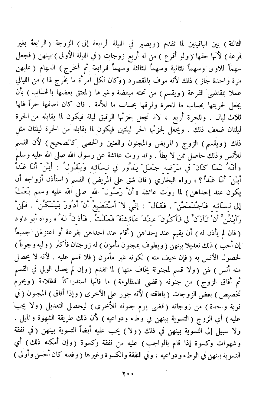 (وَلَا يَجِبُ عَلَيْهِ) أَيْ الزَّوْجِ (التَّسْوِيَةُ بَيْنَهُنَّ فِي وَطْءٍ وَدَوَاعِيه) لِأَنَّ ذَلِكَ طَرِيقَةُ الشَّهْوَةِ وَالْمَيْلِ وَلَا سَبِيلَ إلَى التَّسْوِيَةِ بَيْنَهُنَّ فِي ذَلِكَ (وَلَا) يَجِبُ عَلَيْهِ أَيْضًا التَّسْوِيَةُ بَيْنَهُنَّ (فِي نَفَقَةٍ وَشَهَوَاتٍ وَكِسْوَةٍ إذَا قَامَ بِالْوَاجِبِ) عَلَيْهِ مِنْ نَفَقَةٍ وَكِسْوَةٍ (وَإِنْ أَمْكَنَهُ ذَلِكَ) أَيْ التَّسْوِيَةَ بَيْنَهُنَّ فِي الْوَطْءِ وَدَوَاعِيهِ وَفِي النَّفَقَةِ وَالْكِسْوَةِ وَغَيْرِهَا (وَفِعْلُهُ كَانَ أَحْسَنَ وَأَوْلَى)