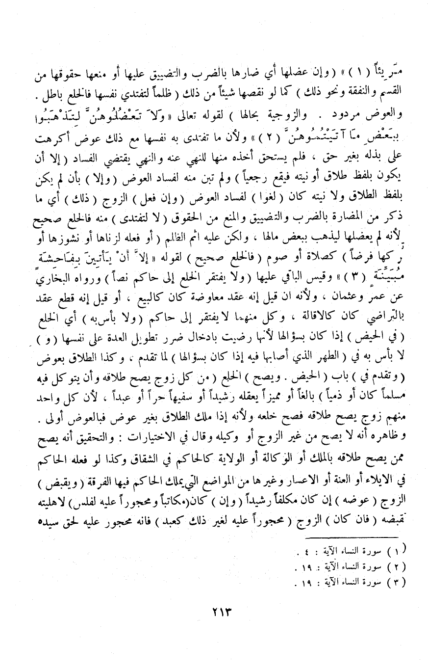 (وَلَا يَفْتَقِر الْخُلْعُ إلَى حَاكِمٍ نَصًّا) وَرَوَاهُ الْبُخَارِيُّ عَنْ عُمَرَ وَعُثْمَانَ وَلِأَنَّهُ إنْ قِيلَ إنَّهُ عَقْدُ مُعَاوَضَةٍ كَانَ كَالْبَيْعِ أَوْ قِيلَ إنَّهُ قَطْعُ عَقْدٍ بِالتَّرَاضِي كَانَ كَالْإِقَالَةِ وَكُلٌّ مِنْهُمَا لَا يَفْتَقِرُ إلَى حَاكِمٍ (وَلَا بَأْسَ بِهِ) أَيْ الْخُلْعِ (فِي الْحَيْضِ) إذَا كَانَ بِسُؤَالِهَا لِأَنَّهَا رَضِيَتْ بِإِدْخَالِ ضَرَرِ تَطْوِيلِ الْعِدَّةِ عَلَى نَفْسِهَا.
