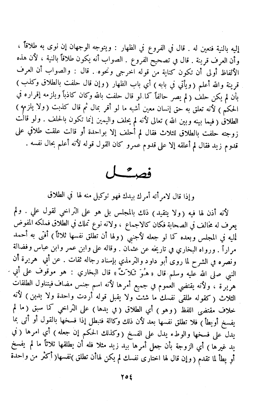 فَصْل (وَإِذَا قَالَ لِامْرَأَتِهِ أَمْرُكِ بِيَدِك فَهُوَ تَوْكِيلٌ مِنْهُ لَهَا فِي الطَّلَاقِ) لِأَنَّهُ إذْن لَهَا فِيهِ (وَلَا يَتَقَيَّدُ) ذَلِكَ (بِالْمَجْلِسِ) بَلْ هُوَ عَلَى التَّرَاخِي لِقَوْلِ عَلِيٍّ وَلَمْ يُعْرَفْ لَهُ مُخَالِفٌ فِي الصَّحَابَةِ فَكَانَ كَالْإِجْمَاعِ، وَلِأَنَّهُ نَوْعُ تَمَلُّكٍ فِي الطَّلَاقِ فَمَلَكَهُ الْمُفَوَّضُ إلَيْهِ فِي الْمَجْلِسِ وَبَعْدَهُ كَمَا لَوْ جَعَلَهُ الْأَجْنَبِيُّ (وَلَهَا أَنْ تُطَلِّقَ نَفْسَهَا ثَلَاثًا) أَفْتَى بِهِ أَحْمَدُ مِرَارًا وَرَوَاهُ الْبُخَارِيُّ فِي تَارِيخِهِ عَنْ عُثْمَانَ.
