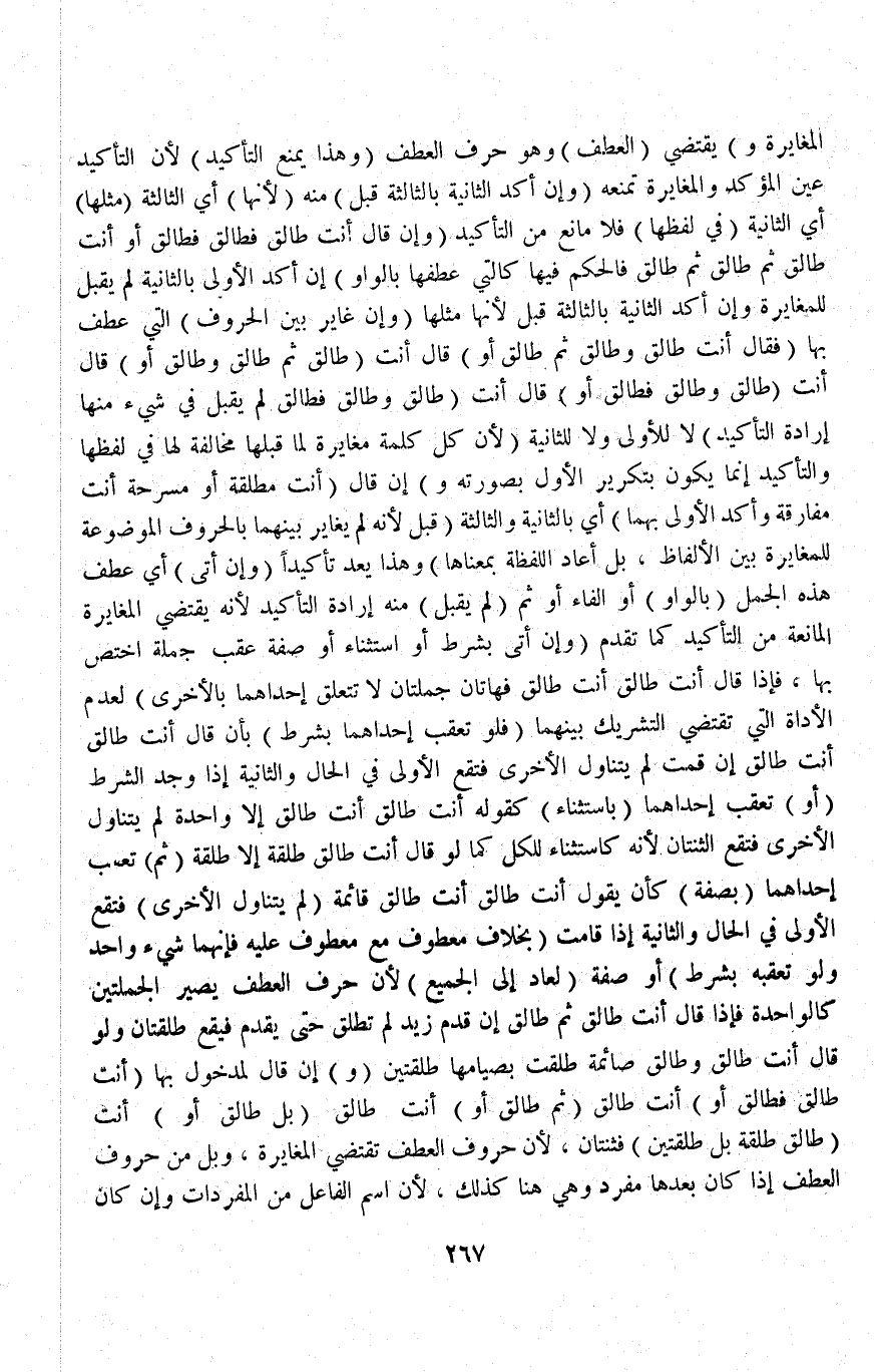(وَ) إنْ قَالَ (أَنْتِ مُطَلَّقَةٌ أَوْ مُسَرَّحَةٌ أَنْتِ مُفَارِقَةٌ وَأَكَّدَ الْأُولَى بِهِمَا) أَيْ بِالثَّانِيَةِ وَالثَّالِثَةِ (قُبِلَ لِأَنَّهُ لَمْ يُغَايِرْ بَيْنَهُمَا بِالْحُرُوفِ الْمَوْضُوعَةِ لِلْمُغَايَرَةِ بَيْنَ الْأَلْفَاظِ، بَلْ أَعَادَ اللَّفْظَةَ بِمَعْنَاهَا) وَهَذَا يُعَدُّ تَأْكِيدًا (وَإِنْ أَتَى) أَيْ عَطَفَ هَذِهِ الْجُمَلَ (بِالْوَاوِ) أَوْ الْفَاءِ أَوْ ثُمَّ (لَمْ يُقْبَلْ) مِنْهُ إرَادَةُ التَّأْكِيدِ لِأَنَّهُ يَقْتَضِي الْمُغَايَرَةِ الْمَانِعَةَ مِنْ التَّأْكِيدِ كَمَا تَقَدَّمَ.