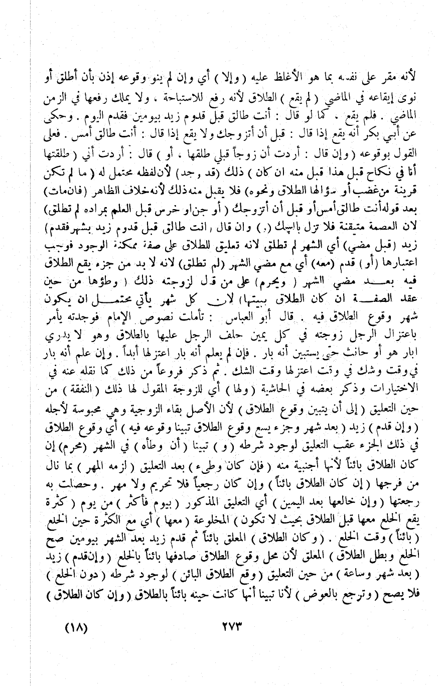 (وَ) وَإِنْ قَالَ (أَنْتِ طَالِقٌ قَبْلَ قُدُومِ زَيْدٍ بِشَهْرٍ فَقَدِمَ) زَيْدٌ (قَبْلَ مُضِيِّ) أَيْ الشَّهْرِ لَمْ تَطْلُقْ لِأَنَّهُ تَعْلِيقٌ عَلَى صِفَةٍ مُمْكِنَةِ الْوُجُودِ فَوَجَبَ اعْتِبَارُهَا (أَوْ) قَدِمَ (مَعَهُ) أَيْ مَعَ مُضِيِّ الشَّهْرِ (لَمْ تَطْلُقْ) لِأَنَّهُ لَا بُدَّ مِنْ جُزْءٍ يَقَعُ الطَّلَاقُ فِيهِ بَعْدَ مُضِيِّ الشَّهْرِ، (وَيَحْرُمُ) عَلَى مَنْ قَالَ لِزَوْجَتِهِ ذَلِكَ (وَطْؤُهَا مِنْ حِينِ عَقْدِ الصِّفَةِ إنْ كَانَ الطَّلَاقُ بِبَيْتِهَا) لِأَنَّ كُلَّ شَهْرٍ يَأْتِي مُحْتَمَلٌ أَنْ يَكُونَ شَهْرُ وُقُوعِ الطَّلَاقِ فِيهِ قَالَ أَبُو الْعَبَّاسِ تَأَمَّلْتُ نُصُوصَ الْإِمَامِ فَوَجَدْتُهُ يَأْمُرُ بِاعْتِزَالِ الرَّجُلِ زَوْجَتَهُ فِي كُلِّ يَمِينٍ حَلَفَ الرَّجُلُ عَلَيْهَا بِالطَّلَاقِ وَهُوَ لَا يَدْرِي أَبَارٌّ هُوَ أَوْ حَانِثٌ؟ حَتَّى يَسْتَبِينَ أَنَّهُ بَارٌّ فَإِنْ لَمْ يَعْلَمْ أَنَّهُ بَارٌّ اعْتَزَلَهَا أَبَدًا وَإِنْ عَلِمَ أَنَّهُ بَارٌّ فِي وَقْتٍ وَشَكَّ فِي وَقْتٍ اعْتَزَلَهَا وَقْتَ الشَّكِّ ثُمَّ ذَكَرَ فُرُوعًا مِنْ ذَلِكَ كَمَا نَقَلَهُ عَنْهُ فِي الِاخْتِيَارَاتِ، وَذَكَرَ بَعْضَهُ فِي الْحَاشِيَةِ.