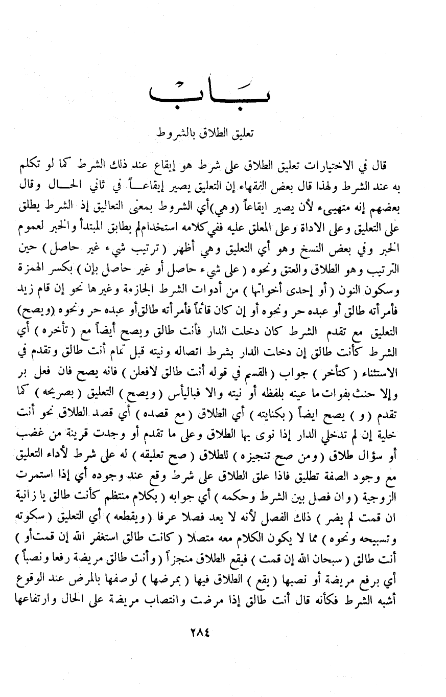 [بَابُ تَعْلِيقِ الطَّلَاقِ بِالشُّرُوطِ]