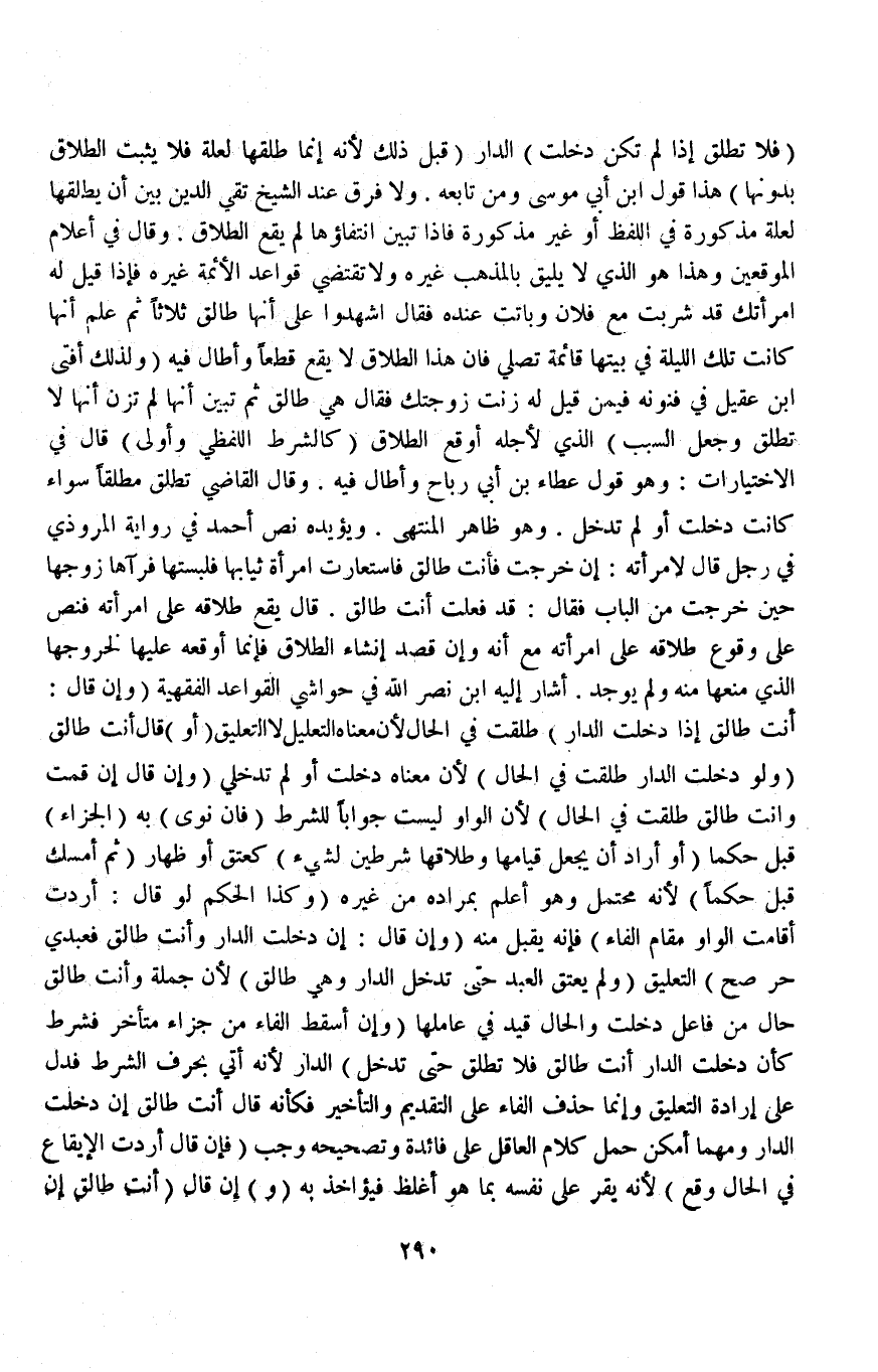(فَلَا تَطْلُقُ إذَا لَمْ تَكُنْ دَخَلْتَ) الدَّارَ (قَبْلَ ذَلِكَ لِأَنَّهُ إنَّمَا طَلَّقَهَا لِعِلَّةٍ فَلَا يَثْبُتُ الطَّلَاقُ بِدُونِهَا) هَذَا قَوْلُ ابْنِ أَبِي مُوسَى وَمَنْ تَابَعَهُ وَلَا فَرْقَ عِنْدَ الشَّيْخِ تَقِيِّ الدِّينِ بَيْنَ أَنْ يُطَلِّقَهَا لِعِلَّةٍ مَذْكُورَةٍ فِي اللَّفْظِ أَوْ غَيْرِ مَذْكُورَةٍ فَإِذَا تَبَيَّنَ انْتِفَاؤُهَا لَمْ يَقَعْ الطَّلَاقُ وَقَالَ فِي إعْلَامِ الْمُوَقِّعِينَ وَهَذَا هُوَ الَّذِي لَا يَلِيقُ بِالْمَذْهَبِ غَيْرُهُ وَلَا تَقْتَضِي قَوَاعِدُ الْأَئِمَّةِ غَيْرَهُ.