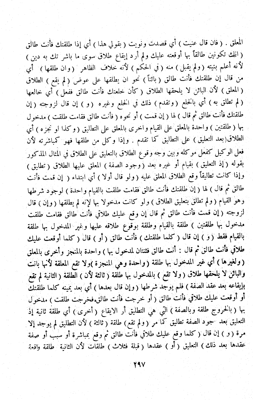 (وَ) إنْ قَالَ لِزَوْجَتِهِ (إنْ طَلَّقْتُكِ فَأَنْتِ طَالِقٌ ثُمَّ قَالَ) لَهَا (إنْ قُمْتِ) أَوْ نَحْوَهُ (فَأَنْتِ طَالِقٌ فَقَامَتْ طَلُقَتْ) مَدْخُولٌ بِهَا (طَلْقَتَيْنِ) وَاحِدَةٌ بِالْمُعَلَّقِ عَلَى الْقِيَامِ وَأُخْرَى بِالْمُعَلَّقِ عَلَى التَّطْلِيقِ (وَكَذَا لَوْ نَجَّزَهُ) أَيْ الطَّلَاقَ (بَعْدَ التَّعْلِيقِ) عَلَى التَّطْلِيقِ كَمَا تَقَدَّمَ وَإِذَا وَكَّلَ مَنْ طَلَّقَهَا فَهُوَ كَمُبَاشَرَتِهِ لِأَنَّ فِعْلَ الْوَكِيلِ كَفِعْلِ مُوَكِّلِهِ وَبَيَّنَ وَجْهَ وُقُوعِ الطَّلَاقِ بِالتَّعْلِيقِ عَلَى الطَّلَاق فِي الْمِثَالِ الْمَذْكُورِ بِقَوْلِهِ (إذْ التَّعْلِيقُ) بِقِيَامٍ أَوْ غَيْرِهِ (بَعْدَ وُجُودِ الصِّفَةِ) الْمُعَلَّقِ عَلَيْهَا الطَّلَاقُ (تَطْلِيقٌ) وَإِذَا كَانَتْ تَطْلِيقًا وَقَعَ الطَّلَاقُ الْمُعَلَّقُ عَلَيْهِ (وَلَوْ قَالَ أَوَّلًا) أَيْ ابْتِدَاءً (إنْ قُمْتِ فَأَنْتِ طَالِقٌ ثُمَّ قَالَ لَهَا إنْ طَلَّقْتُكِ فَأَنْتِ طَالِقٌ فَقَامَتْ طَلُقَتْ بِالْقِيَامِ وَاحِدَةٌ) لِوُجُودِ شَرْطِهَا وَهُوَ الْقِيَامُ (وَلَمْ تَطْلُقْ بِتَعْلِيقِ الطَّلَاقِ) وَلَوْ كَانَتْ مَدْخُولًا بِهَا لِأَنَّهُ لَمْ يُطَلِّقْهَا.
