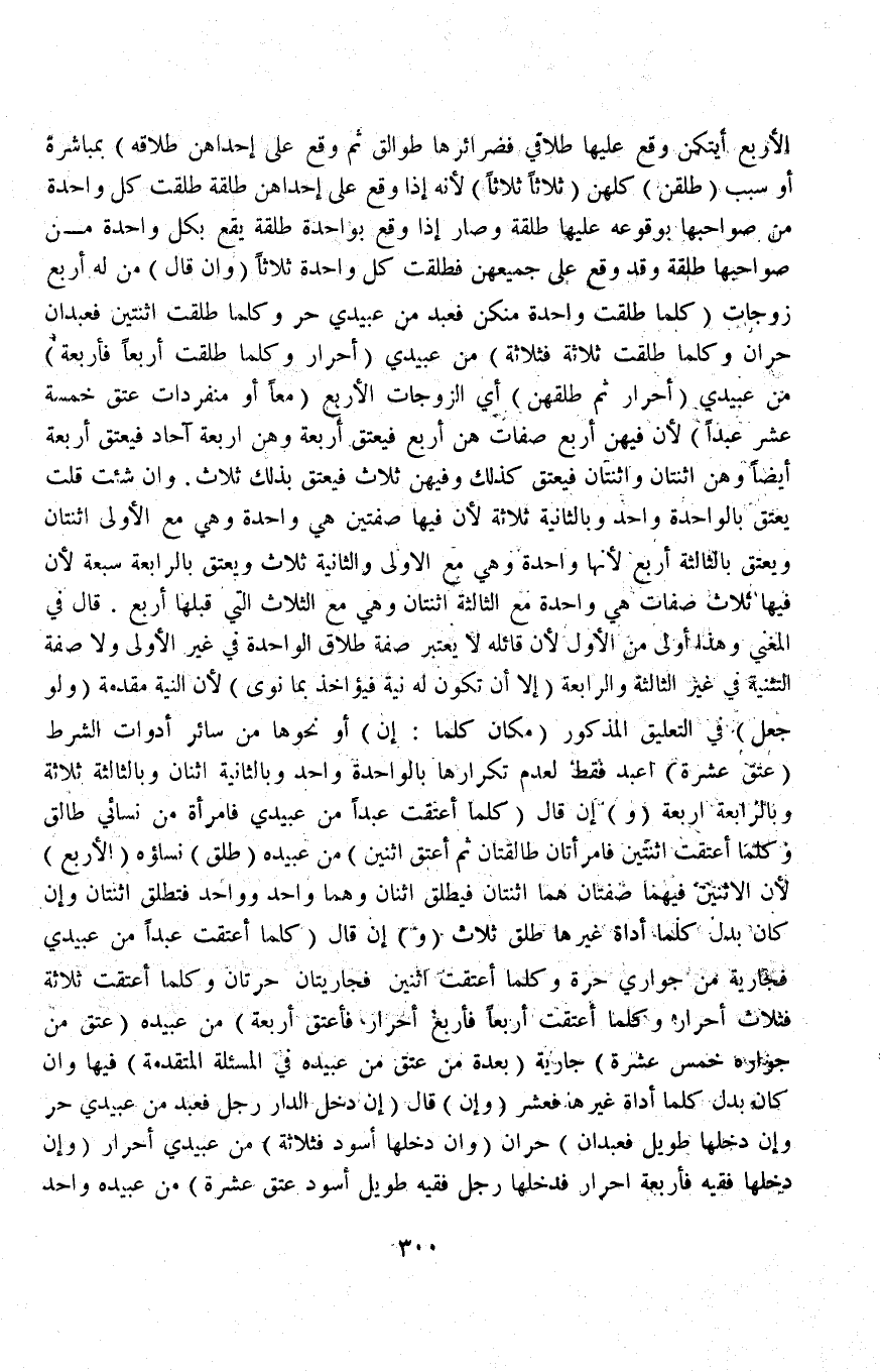 (وَإِنْ قَالَ) مَنْ لَهُ أَرْبَعُ زَوْجَاتٍ (كُلَّمَا طَلَّقْتُ وَاحِدَةً مِنْكُنَّ فَعَبْدٌ مِنْ عَبِيدِي حُرٌّ وَكُلَّمَا طَلَّقْتُ اثْنَتَيْنِ فَعَبْدَانِ حُرَّانِ وَكَلَّمَا طَلَّقْتُ ثَلَاثَةً فَثَلَاثَةٌ) مِنْ عَبِيدِي (أَحْرَارٌ وَكُلَّمَا طَلَّقْتُ أَرْبَعًا فَأَرْبَعَةٌ) مِنْ عَبِيدِي (أَحْرَارٌ ثُمَّ طَلَّقَهُنَّ) أَيْ الزَّوْجَاتِ الْأَرْبَعَ (مَعًا أَوْ مُنْفَرِدَاتٍ عَتَقَ خَمْسَةَ عَشْرَ عَبْدًا) لِأَنَّ فِيهِنَّ أَرْبَعَ صِفَاتِ هُنَّ أَرْبَعُ فَيَعْتِقُ أَرْبَعَةٌ وَهُنَّ أَرْبَعَةُ آحَادٍ فَيَعْتِقُ أَرْبَعَةٌ أَيْضًا وَهُنَّ اثْنَتَانِ وَاثْنَتَانِ فَيَعْتِقُ كَذَلِكَ وَفِيهِنَّ ثَلَاثُ فَيَعْتِقُ بِذَلِكَ ثَلَاثٌ وَإِنْ شِئْتَ قُلْتَ يَعْتِقُ بِالْوَاحِدَةِ وَاحِدٌ وَبِالثَّانِيَةِ ثَلَاثَةٌ لِأَنَّ فِيهَا صِفَتَيْنِ هِيَ وَاحِدَةٌ وَهِيَ مَعَ الْأُولَى اثْنَتَانِ وَيَعْتِقُ بِالثَّالِثَةِ أَرْبَعٌ لِأَنَّهَا وَاحِدَةٌ وَهِيَ مَعَ الْأُولَى وَالثَّانِيَةِ ثَلَاثٌ وَيَعْتِقُ بِالْأَرْبَعَةِ سَبْعَةٌ لِأَنَّ فِيهَا ثَلَاثَ صِفَاتٍ هِيَ وَاحِدَةٌ مَعَ الثَّالِثَةِ اثْنَتَانِ وَهِيَ مَعَ الثَّلَاثِ الَّتِي قَبْلَهَا أَرْبَعٌ قَالَ فِي الْمُغْنِي وَهَذَا أَوْلَى مِنْ الْأَوَّلِ لِأَنَّ قَائِلَهُ لَا يَعْتَبِرُ صِفَةَ طَلَاقِ الْوَاحِدَةِ فِي غَيْرِ الْأُولَى وَلَا صِفَةَ التَّثْنِيَةِ فِي غَيْرِ الثَّالِثَةِ وَالرَّابِعَةِ (إلَّا أَنْ يَكُونَ لَهُ نِيَّةٌ فَيُؤَاخَذُ بِمَا نَوَى) لِأَنَّ النِّيَّةَ مُقَدَّمَةٌ (وَلَوْ جَعَلَ) فِي التَّعْلِيقِ الْمَذْكُورِ (مَكَانَ كُلَّمَا: إنْ) أَوْ نَحْوَهَا مِنْ سَائِرِ أَدَوَاتِ الشَّرْطِ (عَتَقَ عَشَرَةُ) أَعْبُدَ فَقَطْ لِعَدَمِ تَكْرَارِهَا بِالْوَاحِدَةِ وَاحِدٌ وَبِالثَّانِيَةِ اثْنَانِ وَبِالثَّالِثَةِ ثَلَاثَةٌ وَبِالرَّابِعَةِ أَرْبَعَةٌ.