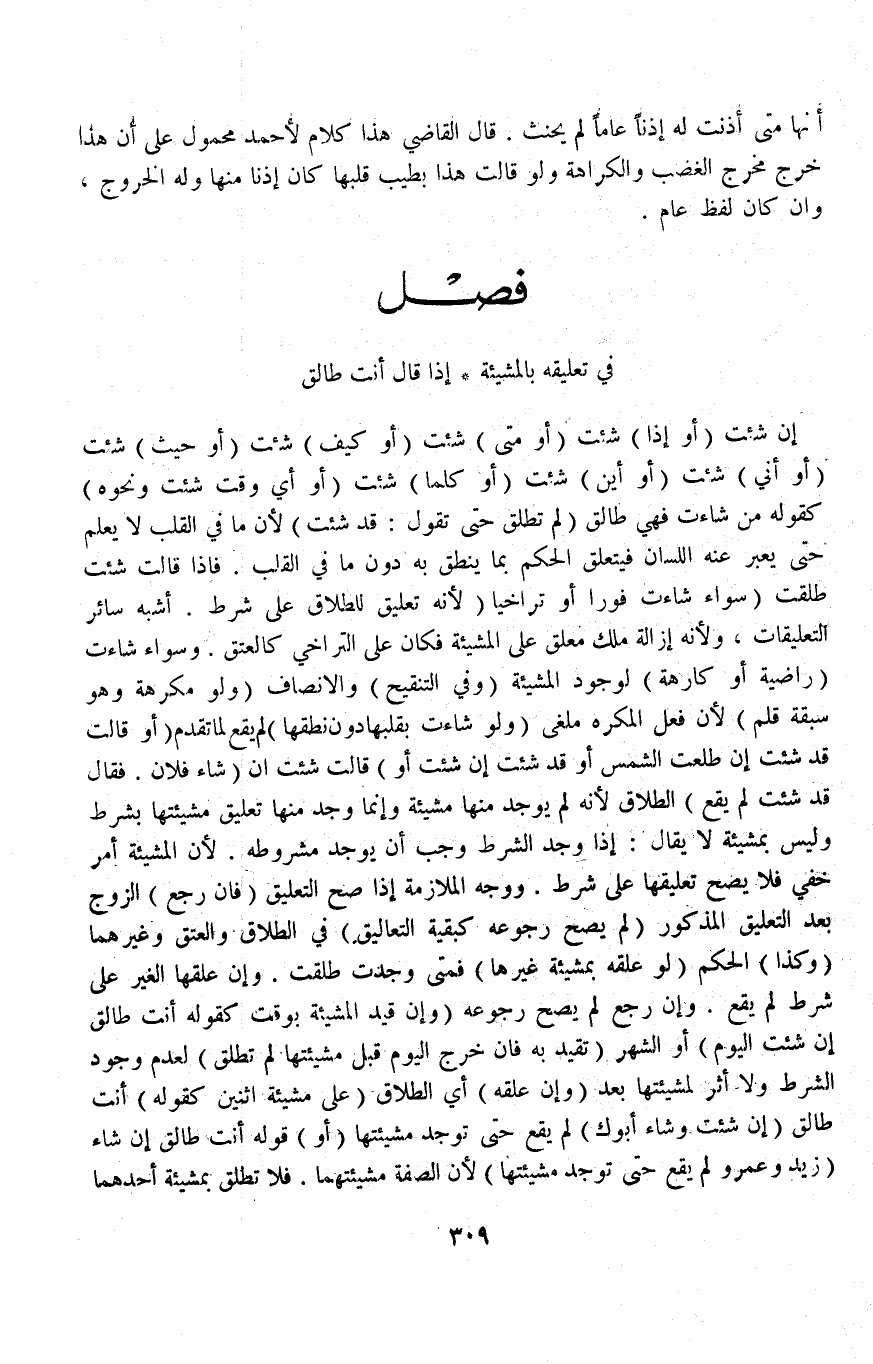 [فَصْلُ فِي تَعْلِيق الطَّلَاقِ بِالْمَشِيئَةِ]
