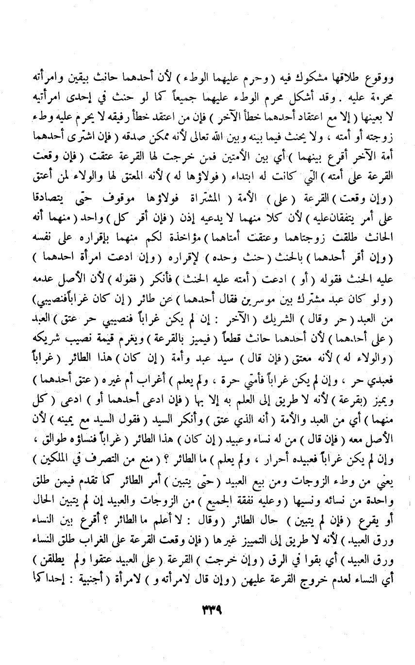 (فَإِنْ قَالَ) مَنْ لَهُ نِسَاءٌ وَعَبِيدٌ (إنْ كَانَ) هَذَا الطَّائِرُ (غُرَابًا فَنِسَاؤُهُ طَوَالِقُ، وَإِنْ لَمْ يَكُنْ غُرَابًا فَعَبِيدُهُ أَحْرَارٌ، وَلَمْ يَعْلَمْ) مَا الطَّائِرُ؟ (مُنِعَ مِنْ التَّصَرُّفِ فِي الْمِلْكَيْنِ) يَعْنِي مِنْ وَطْءِ الزَّوْجَاتِ وَمِنْ بَيْعِ الْعَبِيدِ (حَتَّى يَتَبَيَّنَ) أَمْرَ الطَّائِرِ كَمَا تَقَدَّمَ فِيمَنْ طَلَّقَ وَاحِدَةً مِنْ نِسَائِهِ وَنَسِيَهَا (وَعَلَيْهِ نَفَقَةُ الْجَمِيعِ) مِنْ الزَّوْجَاتِ وَالْعَبِيد إنْ لَمْ يَتَبَيَّنْ الْحَالَ أَوْ يُقْرِعْ (فَإِنْ لَمْ يَتَبَيَّنْ) حَالَ الطَّائِرِ (وَقَالَ لَا أَعْلَمُ مَا الطَّائِرُ؟ أَقْرَعَ بَيْنَ النِّسَاءِ) وَرَقَّ (الْعَبِيدُ) لِأَنَّهُ لَا طَرِيقَ إلَى التَّمْيِيزِ غَيْرُهَا (فَإِنْ وَقَعَتْ الْقُرْعَةُ عَلَى الْغُرَابِ طُلِّقَ النِّسَاءُ وَرَقَّ الْعَبِيدُ) أَيْ بَقُوا فِي الرِّقّ (وَإِنْ خَرَجَتْ) الْقُرْعَةُ (عَلَى الْعَبِيد عَتَقُوا وَلَمْ يُطَلَّقْنَ) أَيْ النِّسَاءُ لِعَدَمِ خُرُوجِ الْقُرْعَةِ عَلَيْهِنَّ.