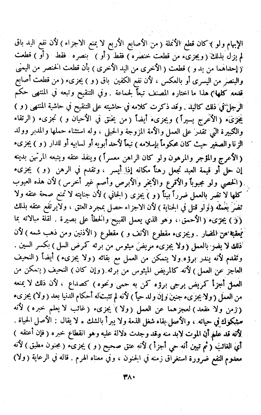وَقَدْ ذَكَرْتُ كَلَامَهُ فِي حَاشِيَتِهِ عَلَى التَّنْقِيحِ فِي حَاشِيَةِ الْمُنْتَهَى (وَ) يُجْزِئُ (الْأَعْرَجُ يَسِيرًا) وَيُجْزِئُ أَيْضًا (مَنْ يُخْنَقُ فِي الْأَحْيَانُ وَ) تُجْزِئُ (الرَّتْقَاءُ وَالْكَبِيرَةُ الَّتِي تَقْدِرُ عَلَى الْعَمَلِ وَالْأَمَةُ الْمُزَوَّجَةُ وَالْحُبْلَى، وَلَهُ اسْتِثْنَاءُ حَمْلِهَا وَالْمُدَبَّرُ وَوَلَدُ الزِّنَا وَالصَّغِيرُ حَيْثُ كَانَ مَحْكُومًا بِإِسْلَامِهِ) تَبَعًا لِأَحَدِ أَبَوَيْهِ أَوْ لِسَابِيهِ أَوْ لِلدَّارِ.
