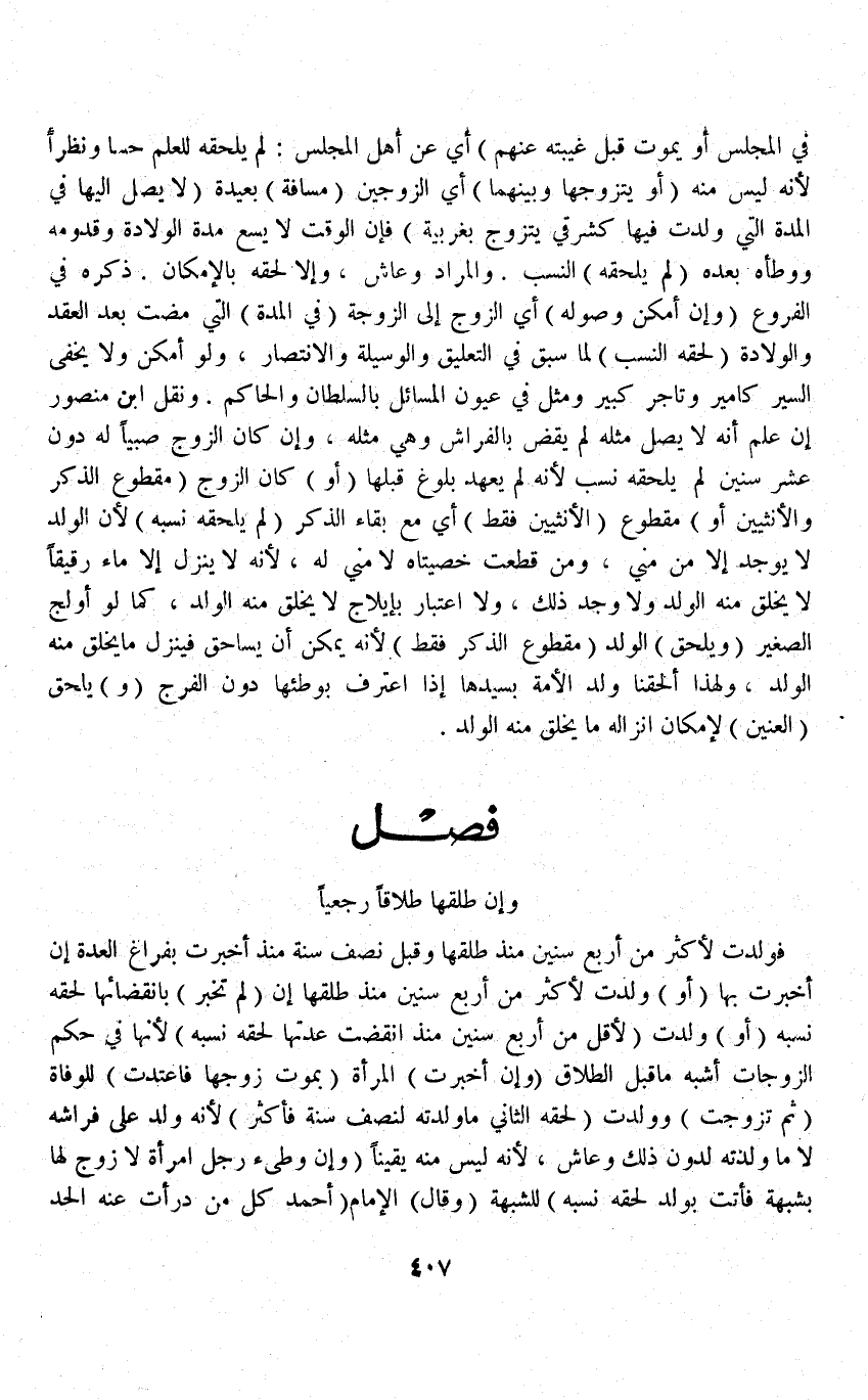 فَصْلٌ وَإِنْ طَلَّقَهَا طَلَاقًا رَجْعِيًّا فَوَلَدَتْ لِأَكْثَرَ مِنْ أَرْبَعِ سِنِينَ مُنْذُ طَلَّقَهَا وَقَبْلَ نِصْفِ سَنَةٍ مُنْذُ أَخْبَرَتْ بِفَرَاغِ الْعِدَّةِ إنْ أَخْبَرَتْ بِهَا (أَوْ) وَلَدَتْ لِأَكْثَرَ مِنْ أَرْبَعِ سِنِينَ مُنْذُ طَلَّقَهَا إنْ (لَمْ تُخْبِرْ) بِانْقِضَائِهَا لَحِقَهُ نَسَبُهُ (أَوْ) وَلَدَتْ (لِأَقَلَّ مِنْ أَرْبَعِ سِنِينَ مُنْذُ انْقَضَتْ عِدَّتُهَا لَحِقَهُ نَسَبُهُ) لِأَنَّهَا فِي حُكْمِ الزَّوْجَاتِ أَشْبَهَ مَا قَبْلَ الطَّلَاقِ (وَإِنْ أُخْبِرَتْ الْمَرْأَةُ بِمَوْتِ زَوْجِهَا فَاعْتَدَّتْ) لِلْوَفَاةِ (ثُمَّ تَزَوَّجَتْ) وَوَلَدَتْ (لَحِقَهُ الثَّانِي مَا وَلَدَتْهُ لِنِصْفِ سَنَةٍ فَأَكْثَرَ) لِأَنَّهُ وُلِدَ عَلَى فِرَاشِهِ لَا مَا وَلَدَتْهُ لِدُونِ ذَلِكَ وَعَاشَ، لِأَنَّهُ لَيْسَ مِنْهُ يَقِينًا.