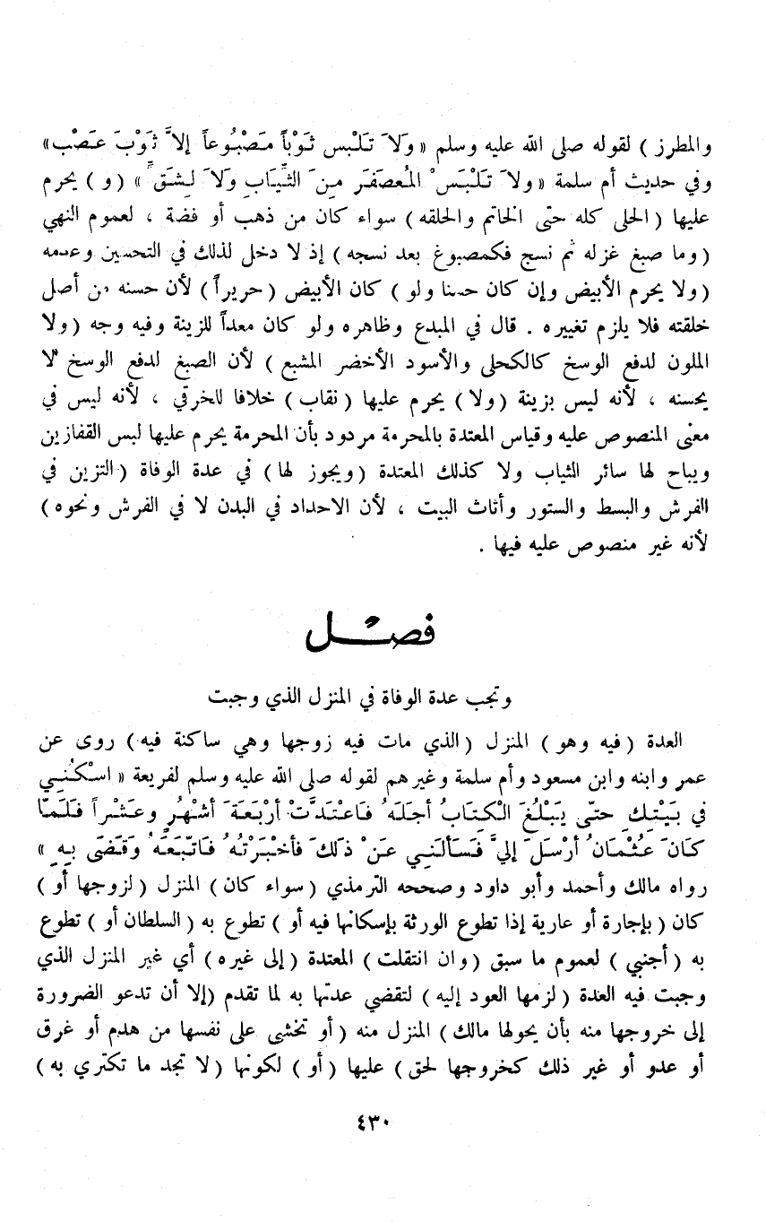ِ وَهُوَ) الْمَنْزِلُ (الَّذِي مَاتَ فِيهِ زَوْجُهَا وَهِيَ سَاكِنَةٌ فِيهِ) رُوِيَ عَنْ عُمَرَ وَابْنِهِ وَابْنِ مَسْعُودٍ وَأُمِّ سَلَمَةَ وَغَيْرِهِمَا لِقَوْلِهِ - صَلَّى اللَّهُ عَلَيْهِ وَسَلَّمَ - لِفُرَيْعَةَ «اُسْكُنِي فِي بَيْتِكِ حَتَّى يَبْلُغَ الْكِتَابُ أَجَلَهُ فَاعْتَدَّتْ أَرْبَعَةَ أَشْهُرٍ وَعَشْرًا فَلَمَّا كَانَ عُثْمَانُ أَرْسَلَ إلَيَّ فَسَأَلَنِي عَنْ ذَلِكَ فَأَخْبَرْتُهُ فَاتَّبَعَهُ وَقَضَى بِهِ» رَوَاهُ مَالِكٌ وَأَحْمَدُ وَأَبُو دَاوُد وَصَحَّحَهُ التِّرْمِذِيُّ (سَوَاءٌ كَانَ) الْمَنْزِلُ (لِزَوْجِهَا أَوْ) كَانَ (بِإِجَارَةٍ أَوْ عَارِيَّةٍ إذَا تَطَوَّعَ الْوَرَثَةُ بِإِسْكَانِهَا فِيهِ أَوْ) تَطَوَّعَ بِهِ (السُّلْطَانُ أَوْ) تَطَوَّعَ بِهِ (أَجْنَبِيٌّ) لِعُمُومِ مَا سَبَقَ.