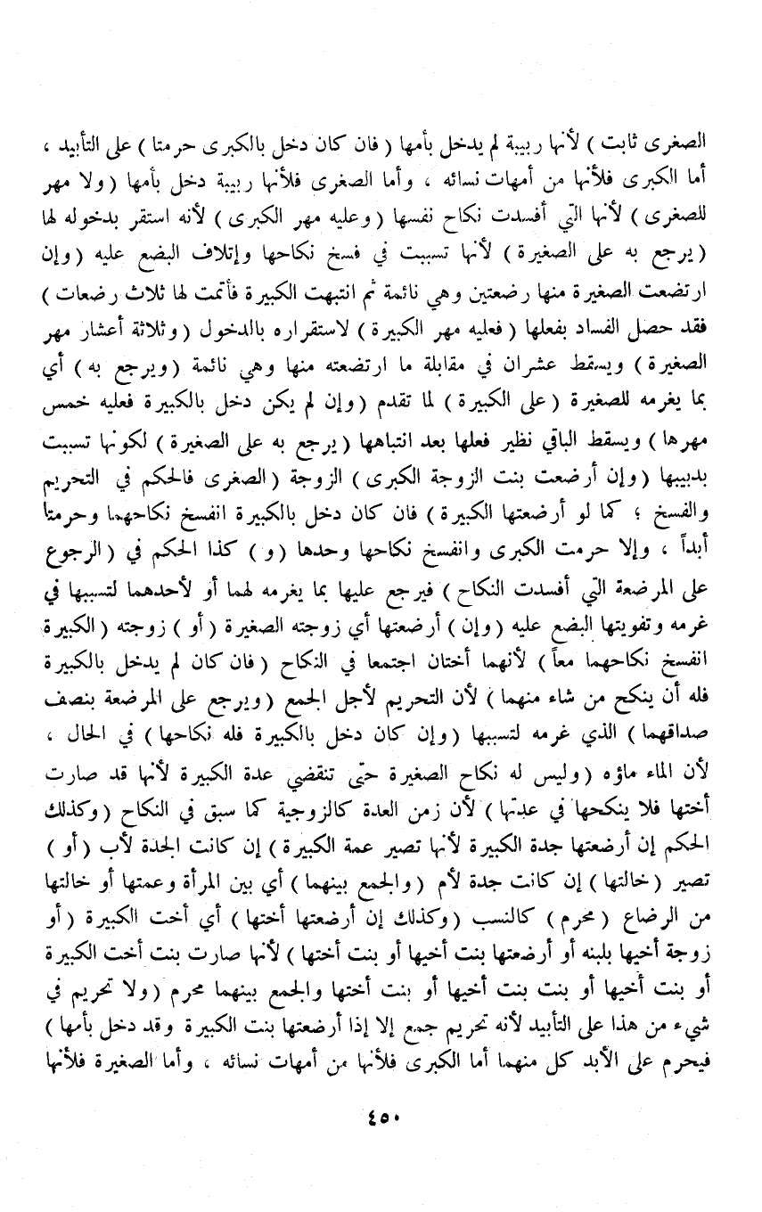 الصُّغْرَى ثَابِتٌ) لِأَنَّهَا رَبِيبَةٌ لَمْ يَدْخُلْ بِأُمِّهَا (فَإِنْ كَانَ دَخَلَ بِالْكُبْرَى حُرِّمَتَا) عَلَى التَّأْبِيدِ أَمَّا الْكُبْرَى فَلِأَنَّهَا مِنْ أُمَّهَاتِ نِسَائِهِ، وَأَمَّا الصُّغْرَى فَلِأَنَّهَا رَبِيبَةٌ دَخَلَ بِأُمِّهَا (وَلَا مَهْرَ لِلصُّغْرَى) لِأَنَّهَا الَّتِي أَفْسَدَتْ نِكَاحَ نَفْسِهَا (وَعَلَيْهِ مَهْرُ الْكُبْرَى) لِأَنَّهُ اسْتَقَرَّ بِدُخُولِهِ لَهَا (يَرْجِعُ بِهِ عَلَى الصَّغِيرَةِ) لِأَنَّهَا تَسَبَّبَتْ فِي فَسْخِ نِكَاحِهَا وَإِتْلَافِ الْبُضْعِ عَلَيْهِ (وَإِنْ ارْتَضَعَتْ الصَّغِيرَةُ مِنْهَا رَضْعَتَيْنِ وَهِيَ نَائِمَةٌ ثُمَّ انْتَبَهَتْ الْكَبِيرَةُ فَأَتَمَّتْ لَهَا ثَلَاثَ رَضَعَاتٍ) فَقَدْ حَصَلَ الْفَسَادُ بِفِعْلِهَا (فَعَلَيْهِ مَهْرُ الْكَبِيرَةِ) لِاسْتِقْرَارِهِ بِالدُّخُولِ (وَثَلَاثَةُ أَعْشَارِ مَهْرِ الصَّغِيرَةِ) وَيَسْقُطُ عُشْرَانِ فِي مُقَابَلَةِ مَا ارْتَضَعَتْهُ مِنْهَا وَهِيَ نَائِمَةٌ (وَيَرْجِعُ بِهِ) أَيْ بِمَا يَغْرَمُهُ لِلصَّغِيرَةِ (عَلَى الْكَبِيرَةِ) لِمَا تَقَدَّمَ (وَإِنْ لَمْ يَكُنْ دَخَلَ بِالْكَبِيرَةِ فَعَلَيْهِ خُمْسُ مَهْرِهَا) وَيَسْقُطُ الْبَاقِي نَظِيرَ فِعْلِهَا بَعْدَ انْتِبَاهِهَا (يَرْجِعُ بِهِ عَلَى الصَّغِيرَةِ) لِكَوْنِهَا تَسَبَّبَتْ بِدَبِيبِهَا.