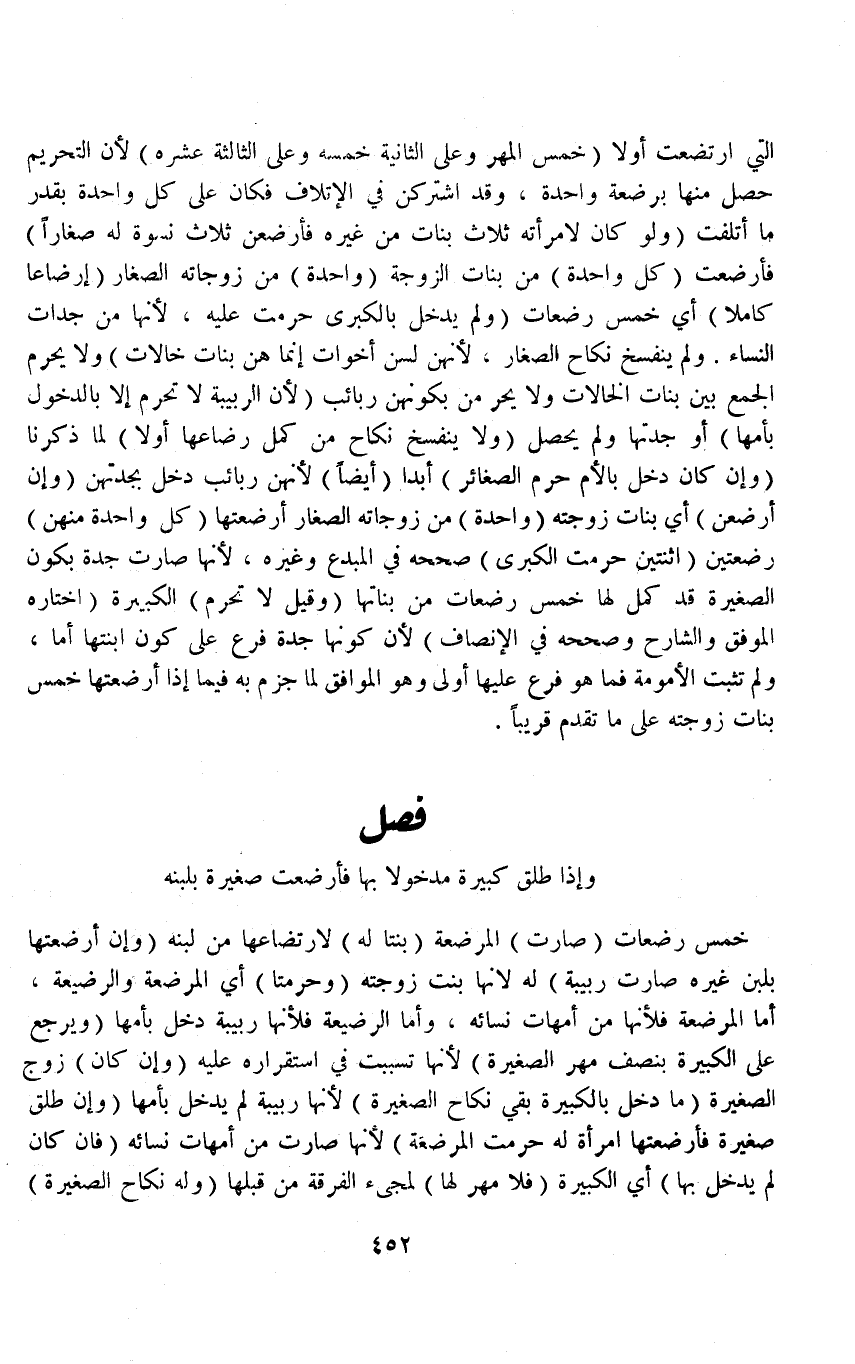 (فَصْلٌ وَإِذَا طَلَّقَ كَبِيرَةً مَدْخُولًا بِهَا فَأَرْضَعَتْ صَغِيرَةً بِلَبَنِهِ) خَمْسَ رَضَعَاتٍ (صَارَتْ) الْمُرْضَعَةُ (بِنْتًا لَهُ) لِارْتِضَاعِهَا مِنْ لَبَنِهِ (وَإِنْ أَرْضَعَتْهَا بِلَبَنِ غَيْرِهِ) صَارَتْ رَبِيبَةً لَهُ لِأَنَّهَا بِنْتُ زَوْجَتِهِ (وَحُرِّمَتَا) أَيْ الْمُرْضِعَةُ وَالرَّضِيعَةُ، أَمَّا الْمُرْضِعَةُ فَلِأَنَّهَا مِنْ أُمَّهَاتِ نِسَائِهِ، وَأَمَّا الرَّضِيعَةُ فَلِأَنَّهَا رَبِيبَةٌ دَخَلَ بِأُمِّهَا (وَيَرْجِعُ عَلَى الْكَبِيرَةِ بِنِصْفِ مَهْرِ الصَّغِيرَةِ) لِأَنَّهَا تَسَبَّبَتْ فِي اسْتِقْرَارِهِ عَلَيْهِ (وَإِنْ كَانَ) زَوْجُ الصَّغِيرَةِ (مَا دَخَلَ بِالْكَبِيرَةِ بَقِيَ نِكَاحُ الصَّغِيرَةِ) لِأَنَّهَا رَبِيبَةٌ لَمْ يَدْخُلْ بِأُمِّهَا.