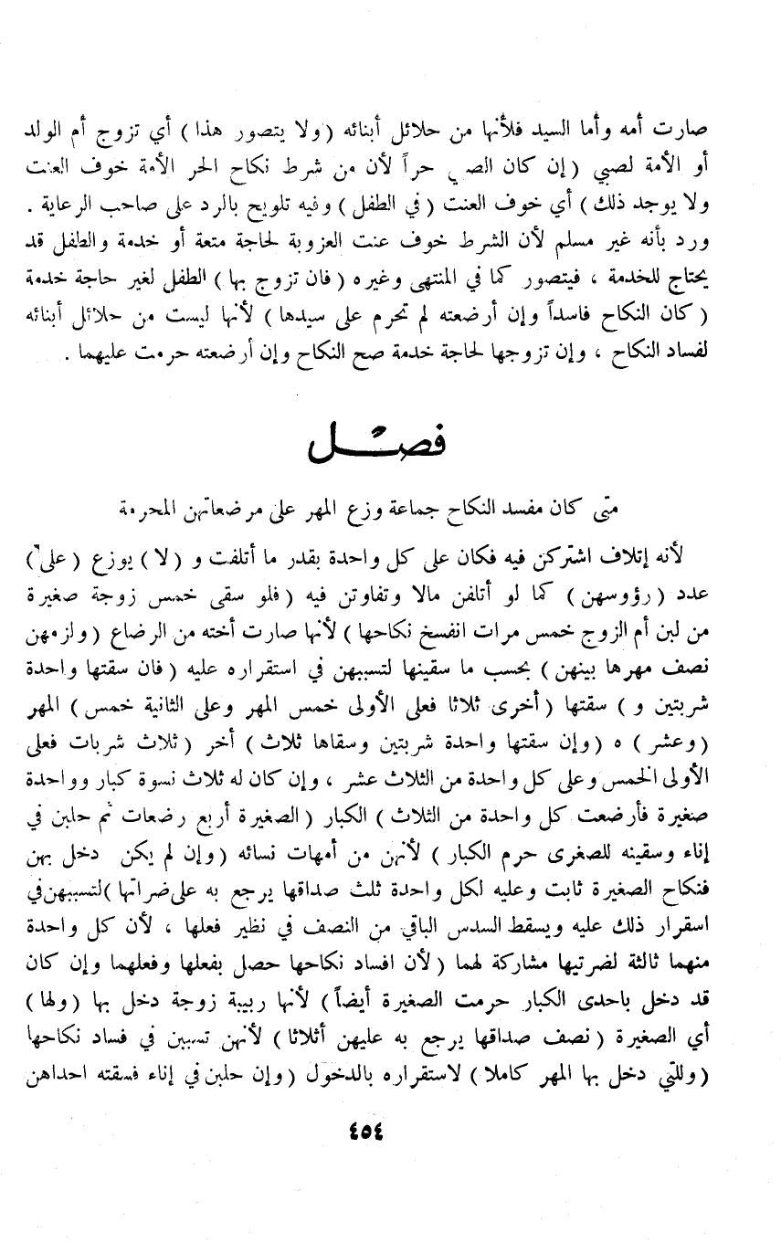 صَارَتْ أُمَّهُ، وَأَمَّا السَّيِّدُ فَلِأَنَّهَا مِنْ حَلَائِلِ أَبْنَائِهِ (وَلَا يُتَصَوَّرُ هَذَا) أَيْ تَزَوُّجُ أُمِّ الْوَلَدِ أَوْ الْأَمَةِ لِصَبِيٍّ (إنْ كَانَ الصَّبِيُّ حُرًّا لِأَنَّ مِنْ شَرْطِ نِكَاحِ الْحُرِّ الْأَمَةَ خَوْفَ الْعَنَتِ وَلَا يُوجَدُ ذَلِكَ) أَيْ خَوْفُ الْعَنَتِ (فِي الطِّفْلِ) وَفِيهِ تَلْوِيحٌ بِالرَّدِّ عَلَى صَاحِبِ الرِّعَايَةِ وَرَدَّ بِأَنَّهُ غَيْرُ مُسَلَّمٍ لِأَنَّ الشَّرْطَ خَوْفُ عَنَتِ الْعُزُوبَةِ لِحَاجَةِ مُتْعَةٍ أَوْ خِدْمَةٍ وَالطِّفْلُ قَدْ يَحْتَاجُ لِلْخِدْمَةِ، فَيُتَصَوَّرُ كَمَا فِي الْمُنْتَهَى وَغَيْرِهِ (فَإِنْ تَزَوَّجَ بِهَا) الطِّفْلُ، لِغَيْرِ حَاجَةِ خِدْمَةٍ (كَانَ النِّكَاحُ فَاسِدًا وَإِنْ أَرْضَعَتْهُ لَمْ تُحَرَّمْ عَلَى سَيِّدِهَا) لِأَنَّهَا لَيْسَتْ مِنْ حَلَائِلِ أَبْنَائِهِ لِفَسَادِ النِّكَاحِ، وَإِنْ تَزَوَّجَهَا لِحَاجَةِ خِدْمَةٍ صَحَّ النِّكَاحُ وَإِنْ أَرْضَعَتْهُ حُرِّمَتْ عَلَيْهِمَا.