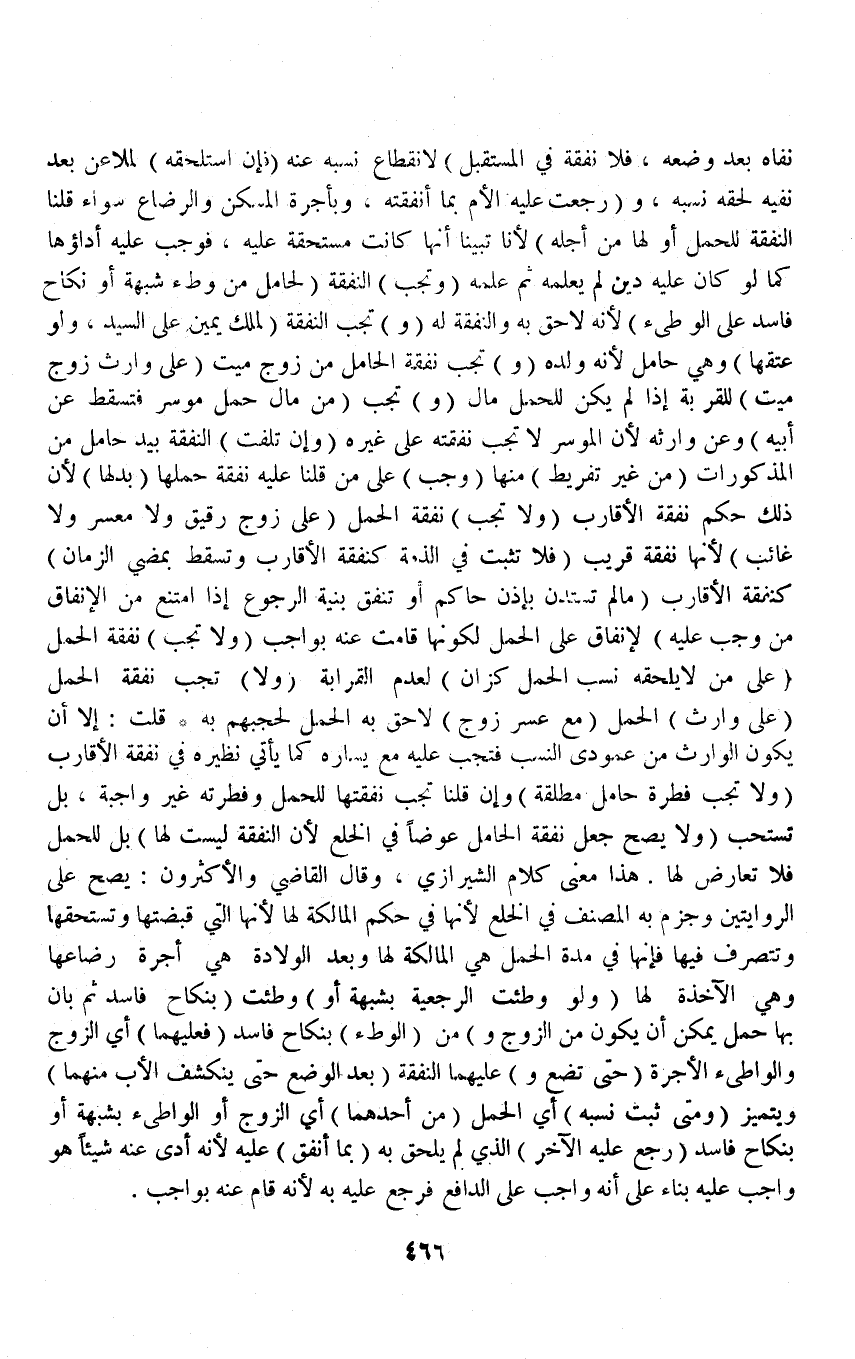 (وَلَا يَصِحُّ جَعْلُ نَفَقَةِ الْحَامِلِ عِوَضًا فِي الْخُلْعِ لِأَنَّ النَّفَقَةَ لَيْسَتْ لَهَا) بَلْ لِلْحَمْلِ فَلَا تَعَارُضَ لَهَا هَذَا مَعْنَى كَلَامُ الشِّيرَازِيِّ، وَقَالَ الْقَاضِي وَالْأَكْثَرُونَ: يَصِحُّ عَلَى الرِّوَايَتَيْنِ وَجَزَمَ بِهِ الْمُصَنِّفُ فِي الْخُلْعِ لِأَنَّهَا فِي حُكْمِ الْمَالِكَةِ لَهَا لِأَنَّهَا الَّتِي قَبَضَتْهَا وَتَسْتَحِقُّهَا وَتَتَصَرَّفُ فِيهَا فَإِنَّهَا فِي مُدَّةِ الْحَمْلِ هِيَ الْمَالِكَةُ لَهَا وَبَعْد الْوِلَادَةِ هِيَ أُجْرَةُ رَضَاعِهَا وَهِيَ الْآخِذَةُ لَهَا.