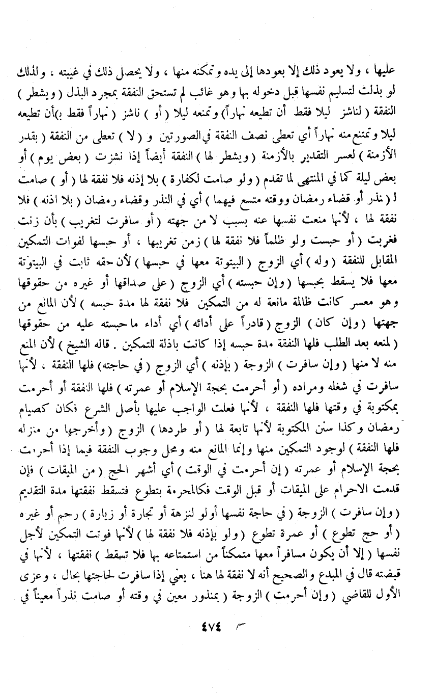 (وَلَوْ صَامَتْ لِكَفَّارَةٍ) بِلَا إذْنِهِ فَلَا نَفَقَةَ لَهَا (أَوْ) صَامَتْ لِنَذْرٍ (أَوْ قَضَاءِ رَمَضَانَ وَوَقْتُهُ مُتَّسِعٌ فِيهِمَا) أَيْ فِي النَّذْرِ وَقَضَاءِ رَمَضَانَ (بِلَا إذْنِهِ) فَلَا نَفَقَةَ لَهَا، لِأَنَّهَا مَنَعَتْ نَفْسَهَا عَنْهُ بِسَبَبٍ لَا مِنْ جِهَتِهِ (أَوْ سَافَرَتْ لِتَغْرِيبٍ) بِأَنْ زَنَتْ فَغُرِّبَتْ (أَوْ حُبِسَتْ وَلَوْ ظُلْمًا فَلَا نَفَقَةَ لَهَا) زَمَنَ تَغْرِيبِهَا، أَوْ حَبْسِهَا لِفَوَاتِ التَّمْكِينِ الْمُقَابِلِ لِلنَّفَقَةِ.