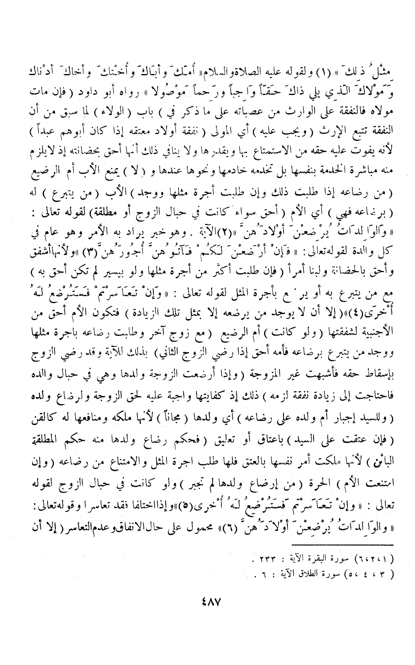 (وَإِنْ امْتَنَعَتْ الْأُمُّ) الْحُرَّةُ (مِنْ إرْضَاعِ وَلَدِهَا لَمْ تُجْبَرْ) وَلَوْ كَانَتْ فِي حِبَالِ الزَّوْجِ لِقَوْلِهِ تَعَالَى: {وَإِنْ تَعَاسَرْتُمْ فَسَتُرْضِعُ لَهُ أُخْرَى} [الطلاق: ٦] وَإِذَا اخْتَلَفَا فَقَدْ تَعَاسَرَا وقَوْله تَعَالَى: {وَالْوَالِدَاتُ يُرْضِعْنَ أَوْلادَهُنَّ} [البقرة: ٢٣٣] مَحْمُولٌ عَلَى حَالِ الْإِنْفَاقِ وَعَدَمِ التَّعَاسُرِ (إلَّا أَنْ