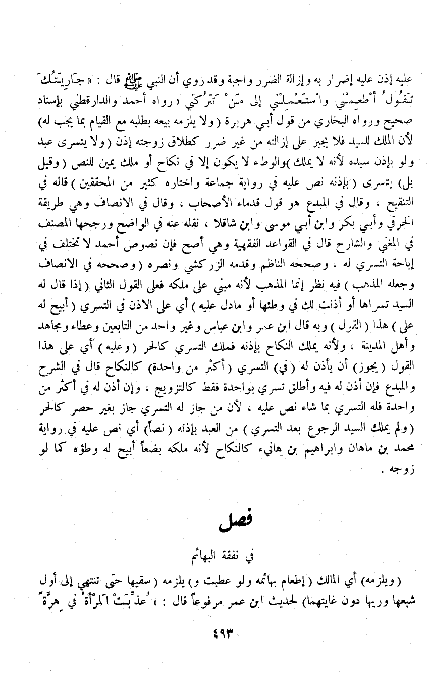 [فَصْلٌ فِي نَفَقَةِ الْبَهَائِمِ]