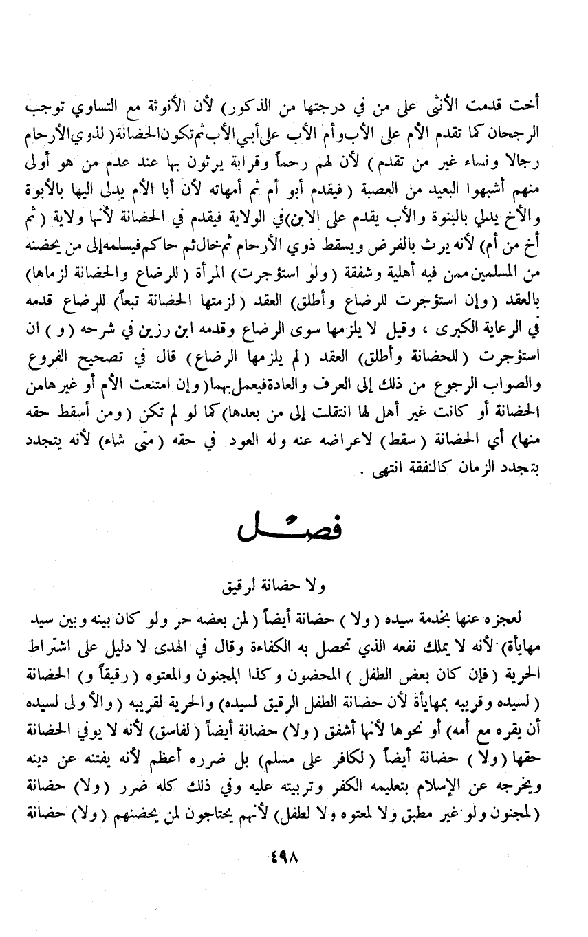 [فَصْلٌ وَلَا حَضَانَةَ لِرَقِيقٍ]