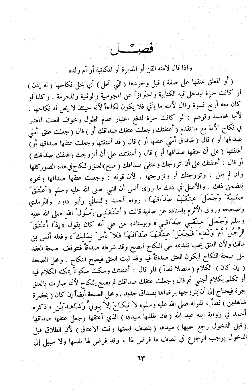 [فَصْلٌ قَالَ لِأَمَتِهِ أَعْتَقْتُكِ وَجَعَلْتُ عِتْقَكِ صَدَاقكِ]