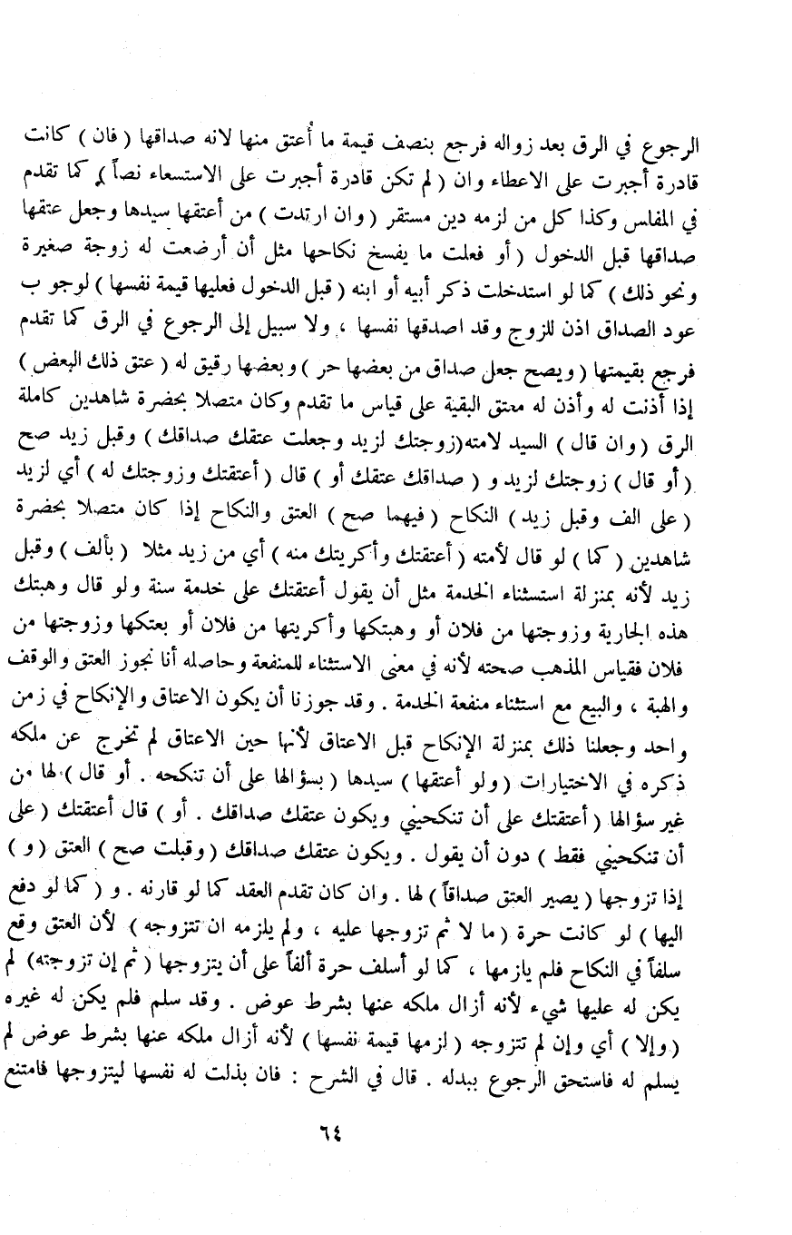 الرُّجُوعِ فِي الرِّقِّ بَعْدَ زَوَالِهِ فَرَجَعَ بِنِصْفِ قِيمَةِ مَا أَعْتَقَ مِنْهَا لِأَنَّهُ صَدَاقُهَا (فَإِنْ) كَانَتْ قَادِرَةً أُجْبِرَتْ عَلَى الْإِعْطَاءِ وَإِنْ (لَمْ تَكُنْ قَادِرَةً أُجْبِرَتْ عَلَى الِاسْتِسْعَاءِ نَصًّا) كَمَا تَقَدَّمَ فِي الْمُفْلِسِ وَكَذَا كُلُّ مَنْ لَزِمَهُ دَيْنٌ مُسْتَقِرٌّ (وَإِنْ ارْتَدَّتْ) مَنْ أَعْتَقَهَا سَيِّدُهَا وَجَعَلَ عِتْقهَا صَدَاقهَا قَبْلَ الدُّخُولِ (أَوْ فَعَلَتْ مَا يَفْسَخُ نِكَاحَهَا مِثْلُ أَنْ أَرْضَعَتْ لَهُ زَوْجَةً صَغِيرَةً وَنَحْو ذَلِكَ) كَمَا لَوْ اسْتَدْخَلَتْ ذَكَر أَبِيهِ أَوْ ابْنِهِ (قَبْلَ الدُّخُولِ فَعَلَيْهَا قِيمَةُ نَفْسِهَا) لِوُجُوبِ عَوْدِ الصَّدَاقِ إذَنْ لِلزَّوْجِ وَقَدْ أَصْدَقهَا نَفْسهَا، وَلَا سَبِيلَ إلَى الرُّجُوعِ فِي الرِّقِّ كَمَا تَقَدَّمَ فَرَجَعَ بِقِيمَتِهَا.