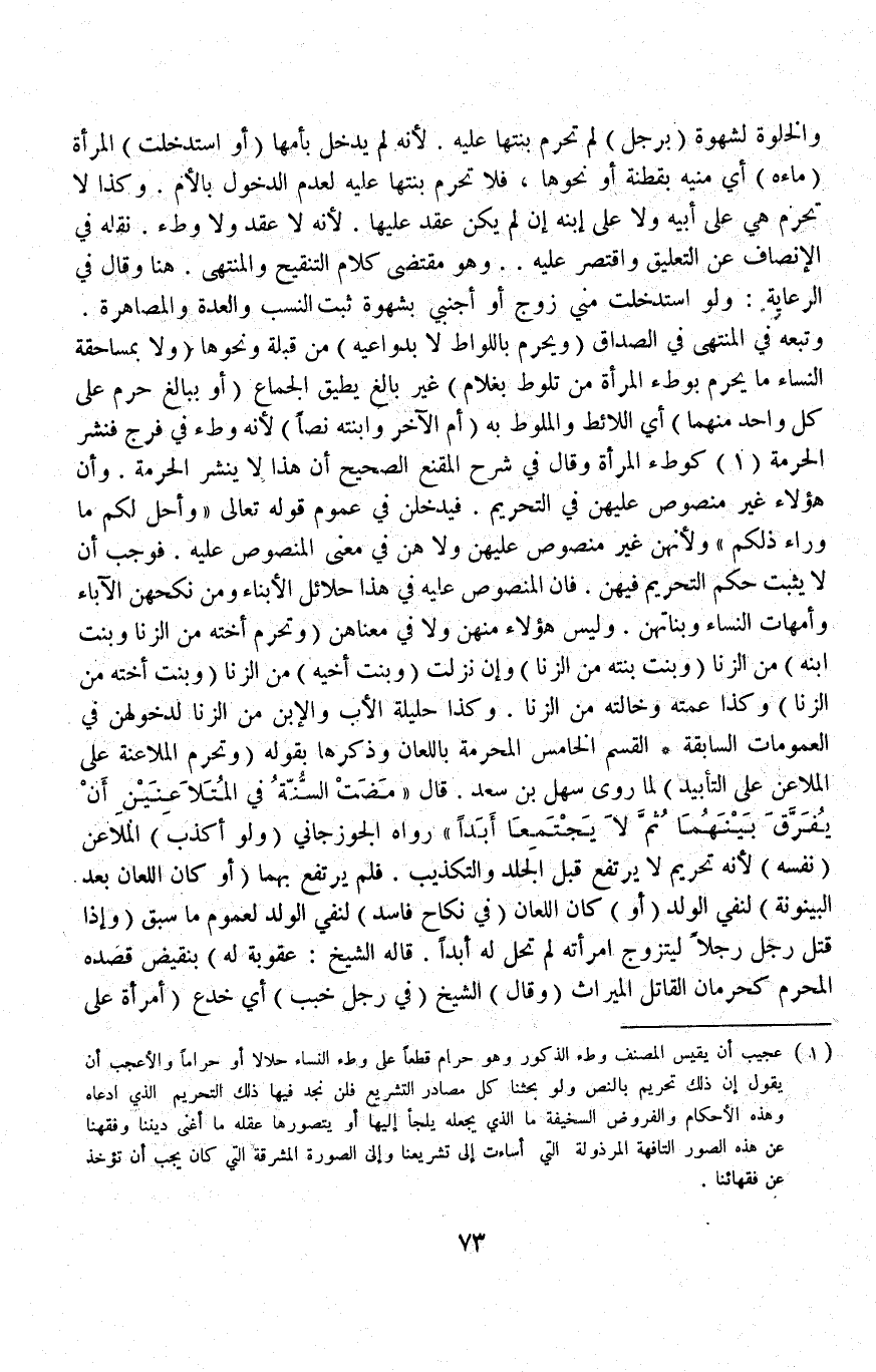 وَقَالَ فِي شَرْحِ الْمُقْنِعِ الصَّحِيحِ أَنَّ هَذَا لَا يَنْشُرُ الْحُرْمَةَ وَأَنَّ هَؤُلَاءِ غَيْرُ مَنْصُوصٍ عَلَيْهِنَّ فِي التَّحْرِيمِ فَيَدْخُلْنَ فِي عُمُومِ قَوْله تَعَالَى {وَأُحِلَّ لَكُمْ مَا وَرَاءَ ذَلِكُمْ} [النساء: ٢٤] وَلِأَنَّهُنَّ غَيْرُ مَنْصُوصٍ عَلَيْهِنَّ وَلَا هُنَّ فِي مَعْنَى الْمَنْصُوصِ عَلَيْهِ فَوَجَبَ أَنْ لَا يَثْبُتَ حُكْمُ التَّحْرِيمِ فِيهِنَّ فَإِنَّ الْمَنْصُوصَ عَلَيْهِ فِي هَذَا حَلَائِلُ الْأَبْنَاءِ وَمَنْ نَكَحَهُنَّ الْآبَاءُ وَأُمَّهَاتُ النِّسَاءِ وبَنَاتُهُنَّ.