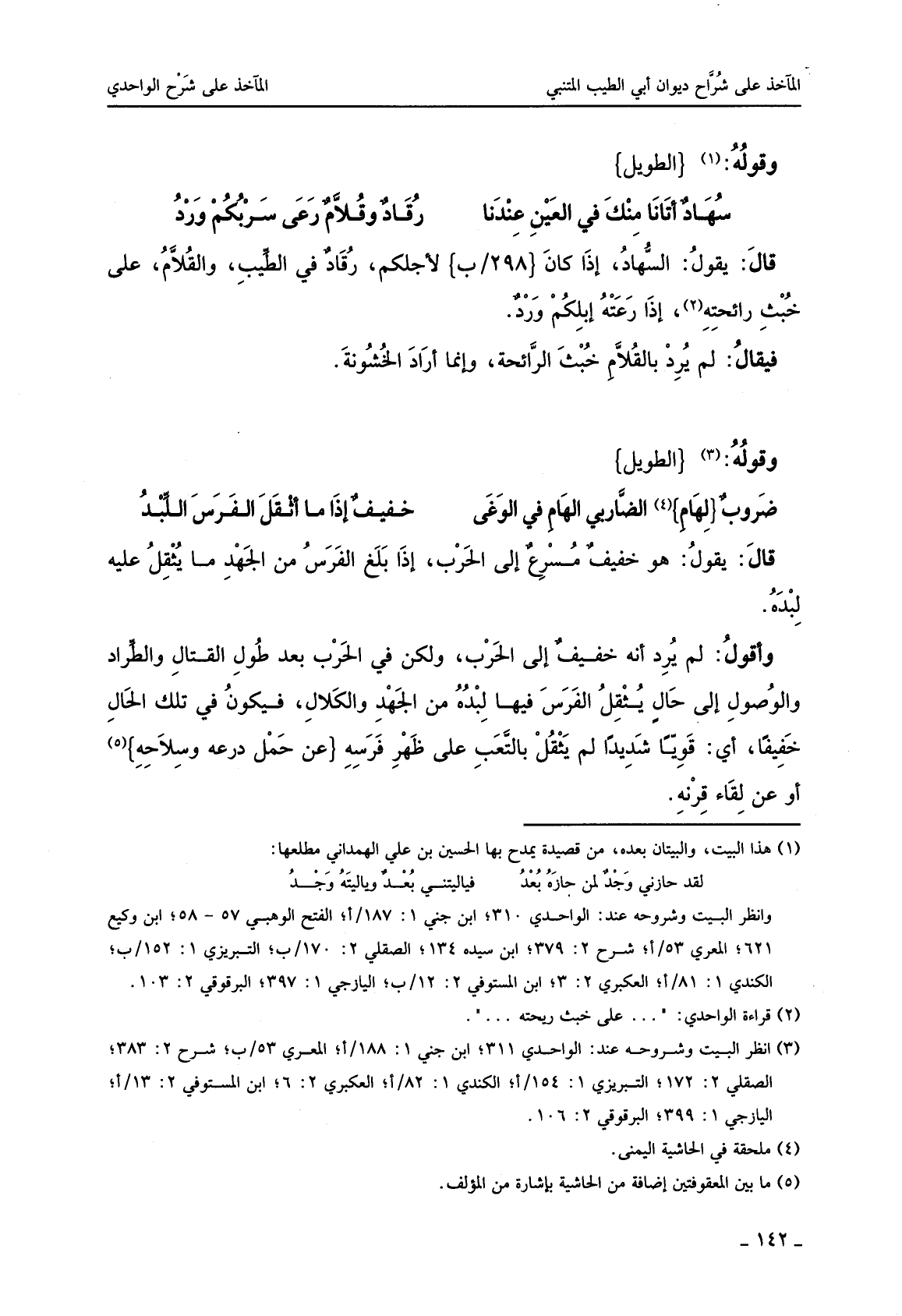 كتاب المآخذ على شراح ديوان أبي الطيب المتنبي (اسم الجزء: 5)