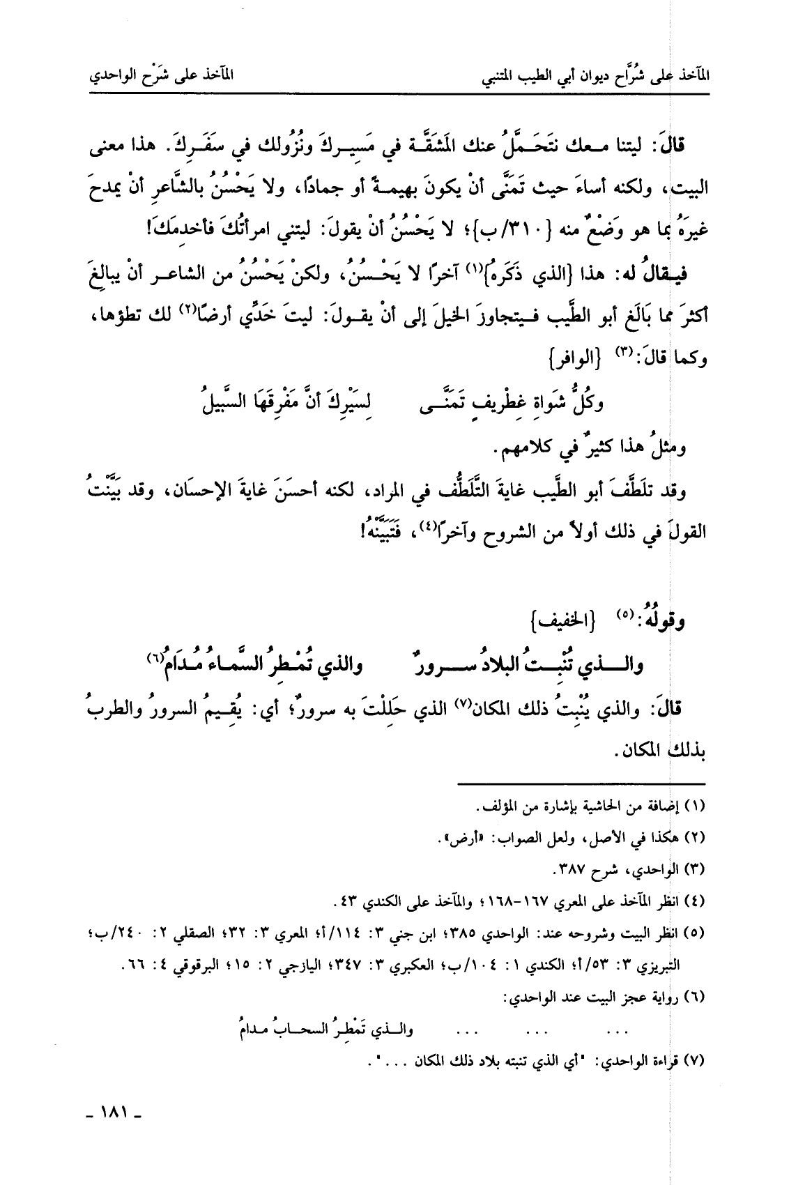 كتاب المآخذ على شراح ديوان أبي الطيب المتنبي (اسم الجزء: 5)