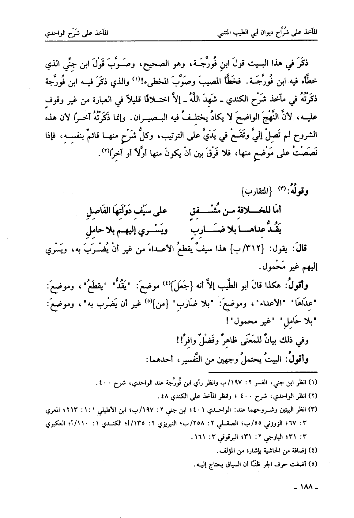 كتاب المآخذ على شراح ديوان أبي الطيب المتنبي (اسم الجزء: 5)