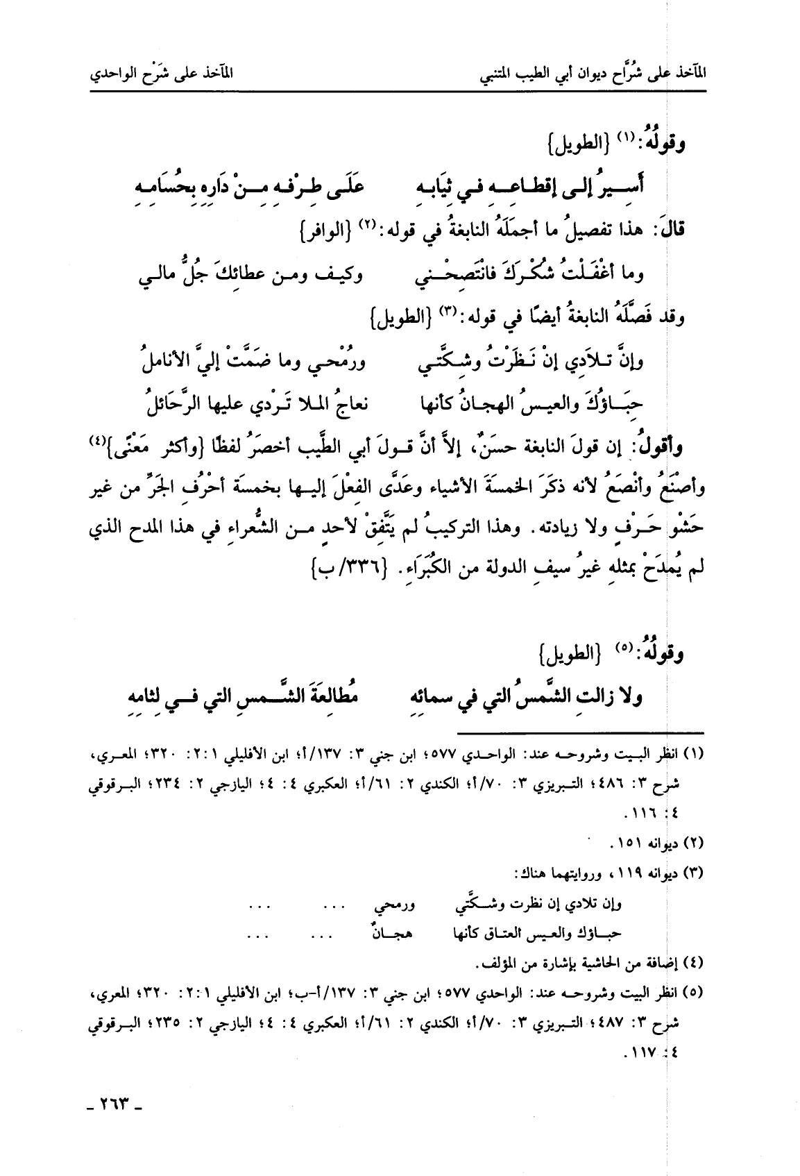 كتاب المآخذ على شراح ديوان أبي الطيب المتنبي (اسم الجزء: 5)