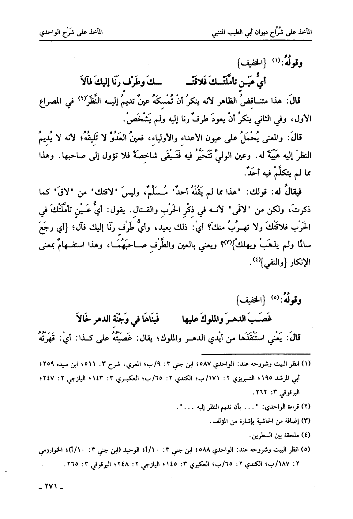كتاب المآخذ على شراح ديوان أبي الطيب المتنبي (اسم الجزء: 5)
