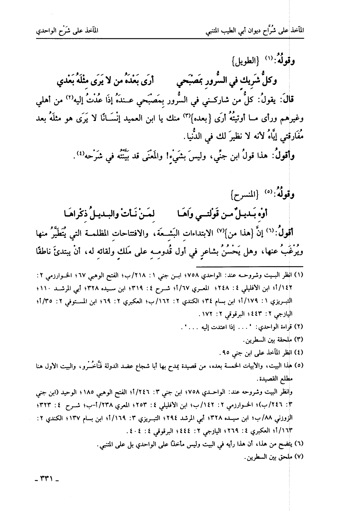 كتاب المآخذ على شراح ديوان أبي الطيب المتنبي (اسم الجزء: 5)