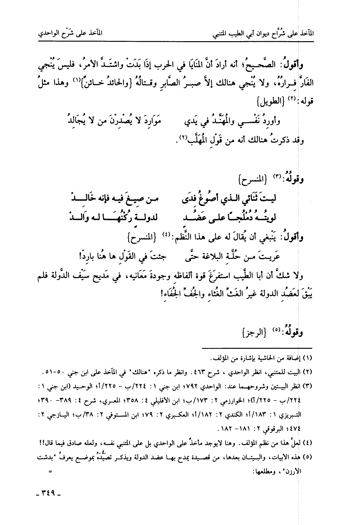 كتاب المآخذ على شراح ديوان أبي الطيب المتنبي (اسم الجزء: 5)