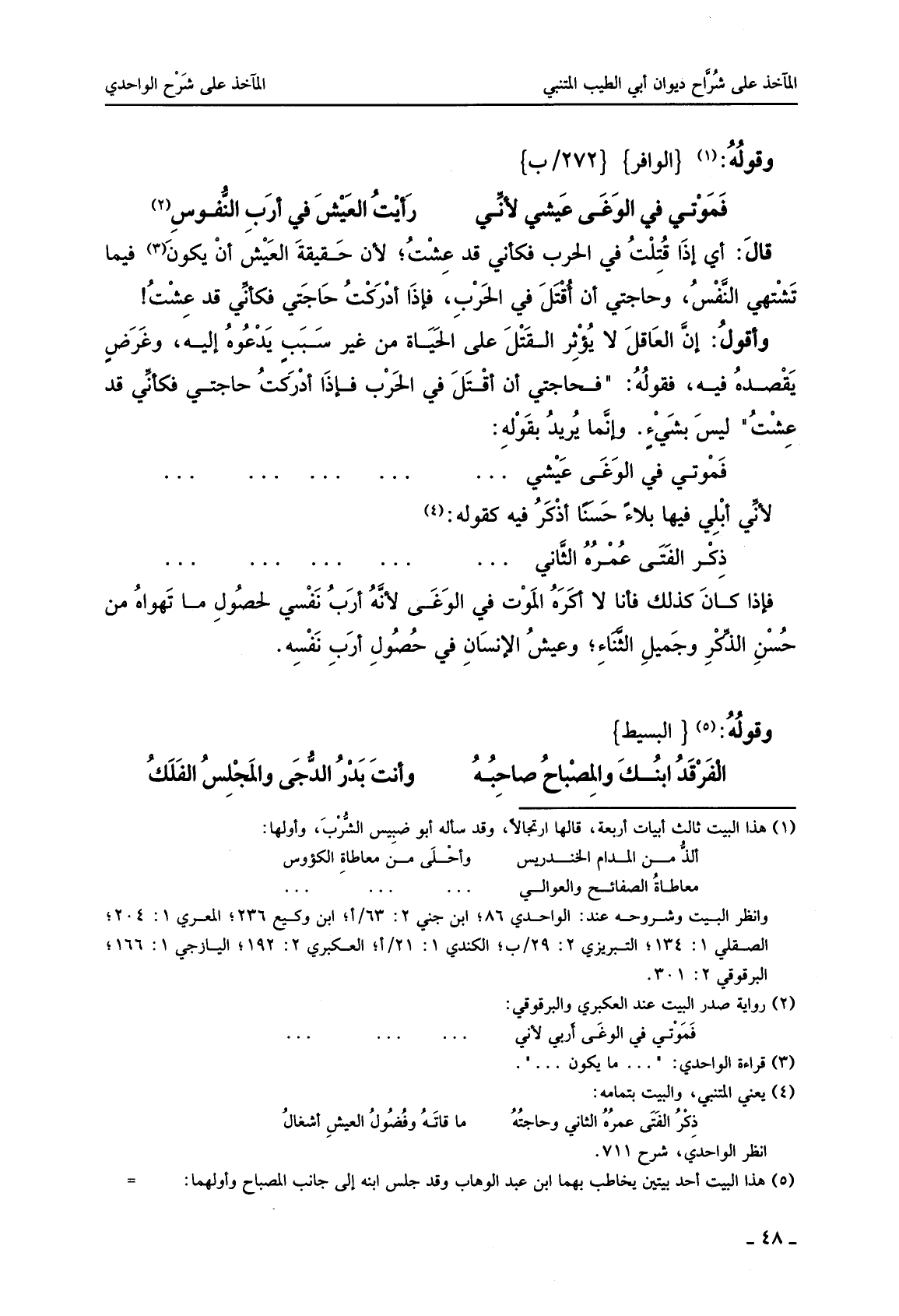كتاب المآخذ على شراح ديوان أبي الطيب المتنبي (اسم الجزء: 5)