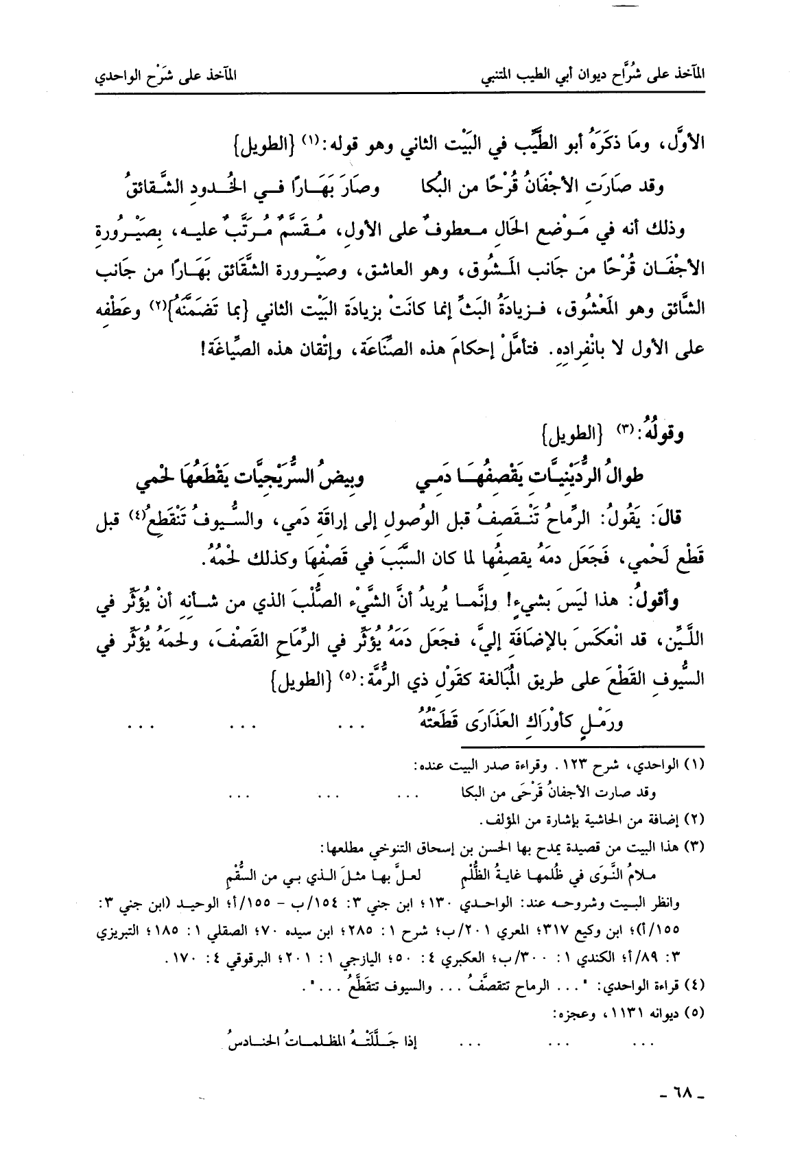 كتاب المآخذ على شراح ديوان أبي الطيب المتنبي (اسم الجزء: 5)