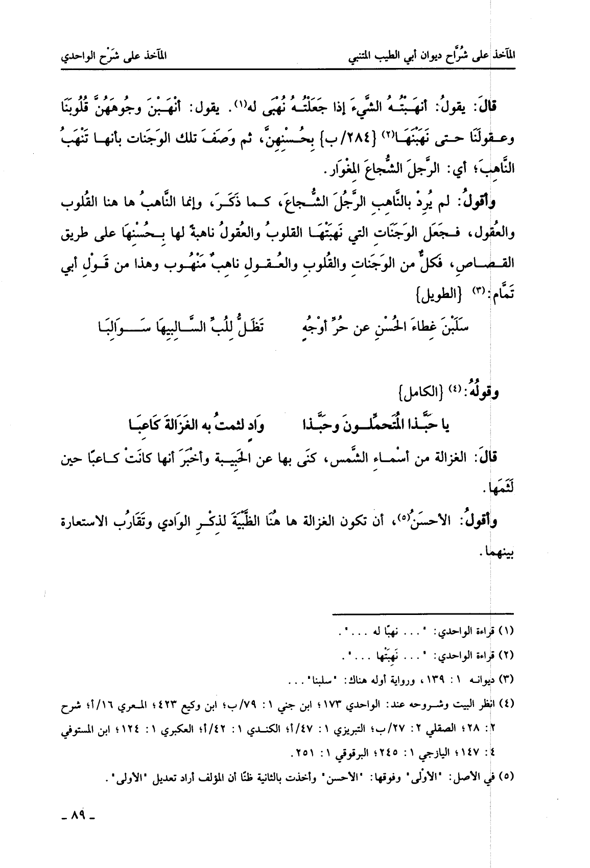 كتاب المآخذ على شراح ديوان أبي الطيب المتنبي (اسم الجزء: 5)