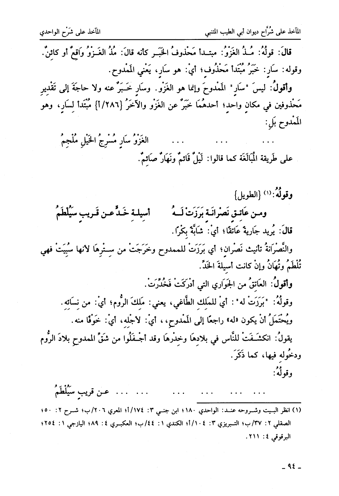 كتاب المآخذ على شراح ديوان أبي الطيب المتنبي (اسم الجزء: 5)