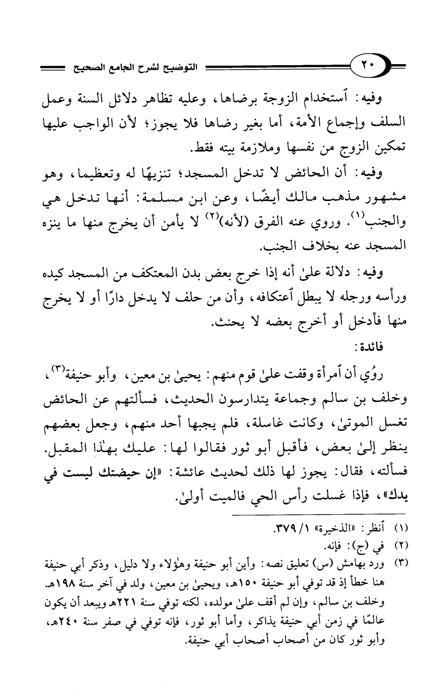 (¬3) ورد بهامش (س) تعليق نصه: وأين أبو حنيفة وهؤلاء ولا دليل، وذكر أبي حنيفة هنا خطأ إذ قد توفي أبو حنيفة 150 هـ، ويحيى بن معين، ولد في آخر سنة 198 هـ. وخلف بن سالم، وإن لم أقف على مولده، لكنه توفي سنة 221 هـ ويبعد أن يكون عالمًا في زمن أبي حنيفة يذاكر، وأما أبو ثور، فإنه توفي في صفر سنة 240 هـ، وأبو ثور كان من أصحاب أصحاب أبي حنيفة.