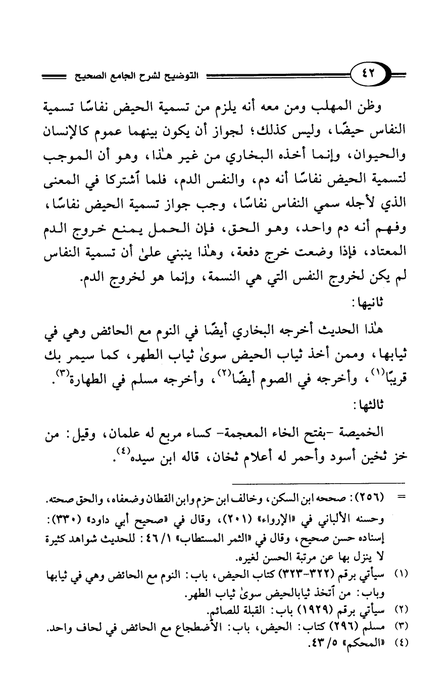 (¬1) سيأتي برقم (322 - 323) كتاب الحيض، باب: النوم مع الحائض وهي في ثيابها وباب: من اتخذ ثياب الحيض سوى ثباب الطهر.