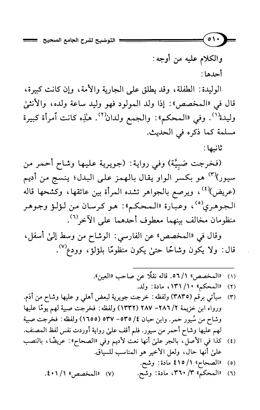 (¬5) "الصحاح" 1/ 415 مادة: وشح.