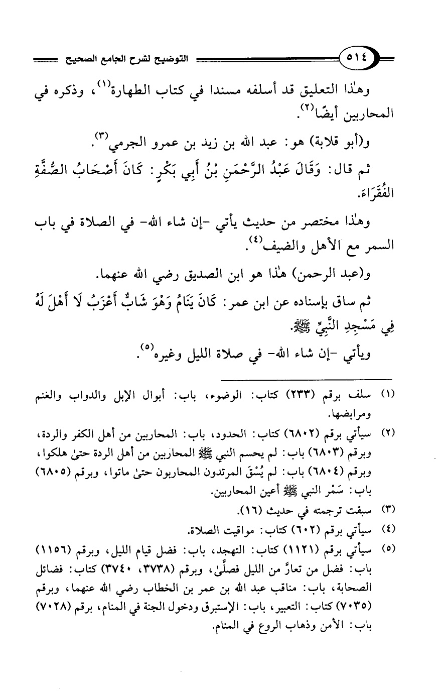 (¬2) سيأتي برقم (6802) كتاب: الحدود، باب: المحاربين من أهل الكفر والردة، وبرقم (6803) باب: لم يحسم النبي - صلى الله عليه وسلم - المحاربين من أهل الردة حتى هلكوا، وبرقم (6804) باب: لم يُسْقَ المرتدون المحاربون حتى ماتوا، وبرقم (6805) باب: سَمْر النبي - صلى الله عليه وسلم - أعين المحاربين.