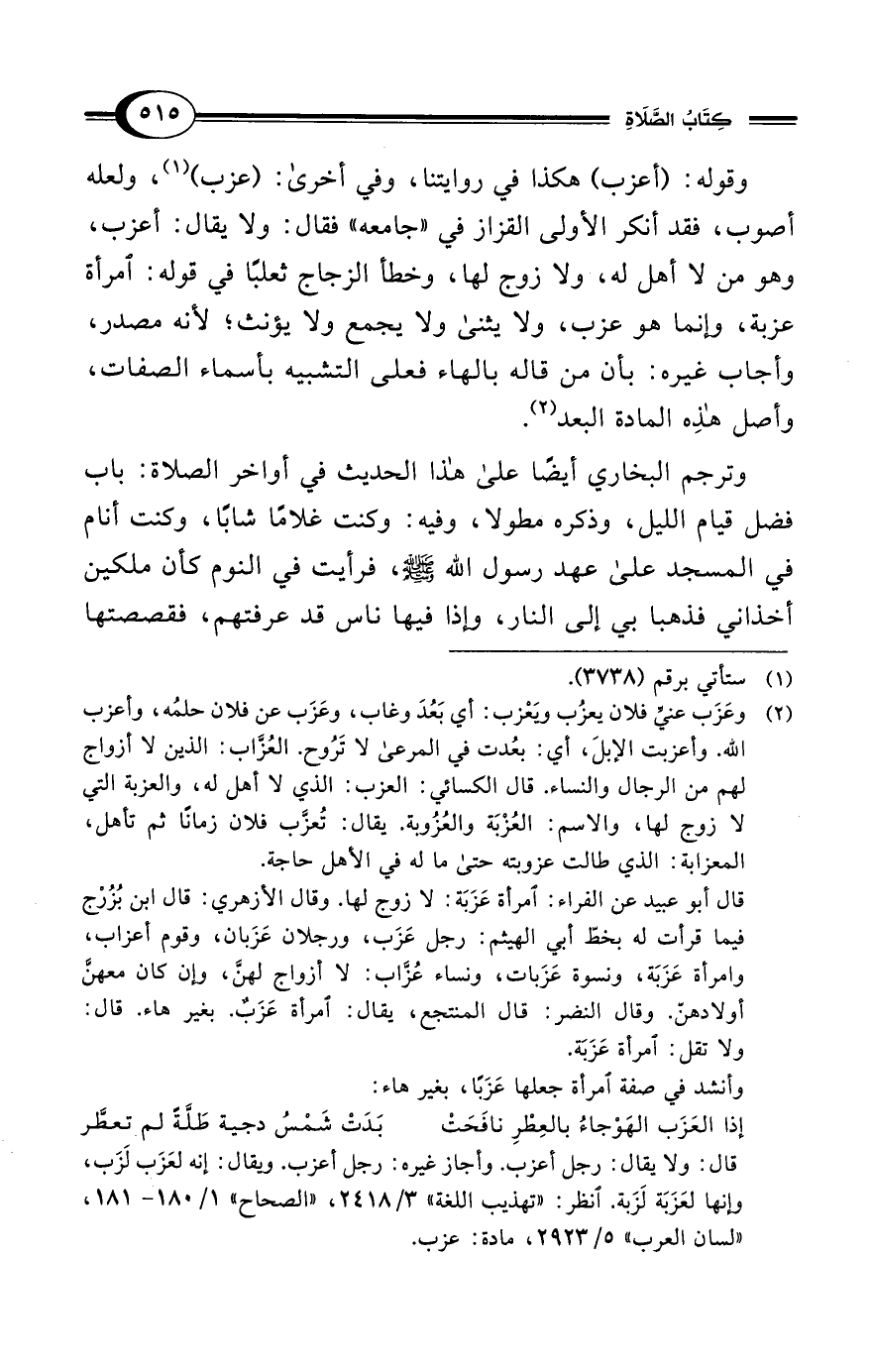 قال: ولا يقال: رجل أعزب. وأجاز غيره: رجل أعزب. ويقال: إنه لعَزَب لَزَب، وإنها لعَزَبَة لَزَبة. انظر: "تهذيب اللغة" 3/ 2418، "الصحاح" 1/ 180 - 181، "لسان العرب" 5/ 2923، مادة: عزب.