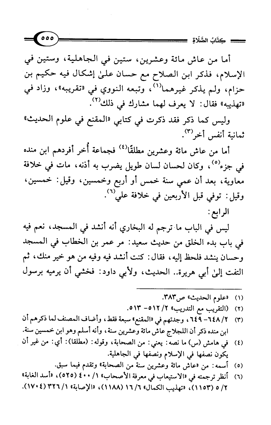 أما من عاش مائة وعشرين، ستين في الجاهلية، وستين في الإسلام، فذكر ابن الصلاح مع حسان على إشكال فيه حكيم بن حزام، ولم يذكر غيرهما (¬1)، وتبعه النووي في "تقريبه"، وزاد في "تهذيبه" فقال: لا يعرف لهما مشارك في ذلك (¬2).